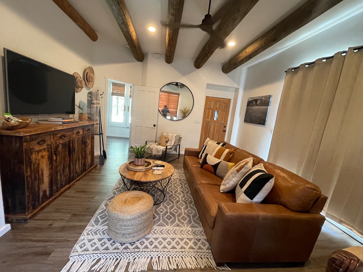 Relájate en esta clásica casita de adobe. A poca distancia a pie de restaurantes elegantes y spas. Nuestra pequeña casita cuenta con hermosas vistas, piscina (en temporada) y zona de barbacoa. Salones, mantas para contemplar las estrellas por la noche. Puedes ver a «Roady», el correcaminos residente, un enorme búho marrón, o si eres un entusiasta de las aves, muchas especies inusuales se detienen para tomar una copa ocasional en el abrevadero. Terreno tranquilo.