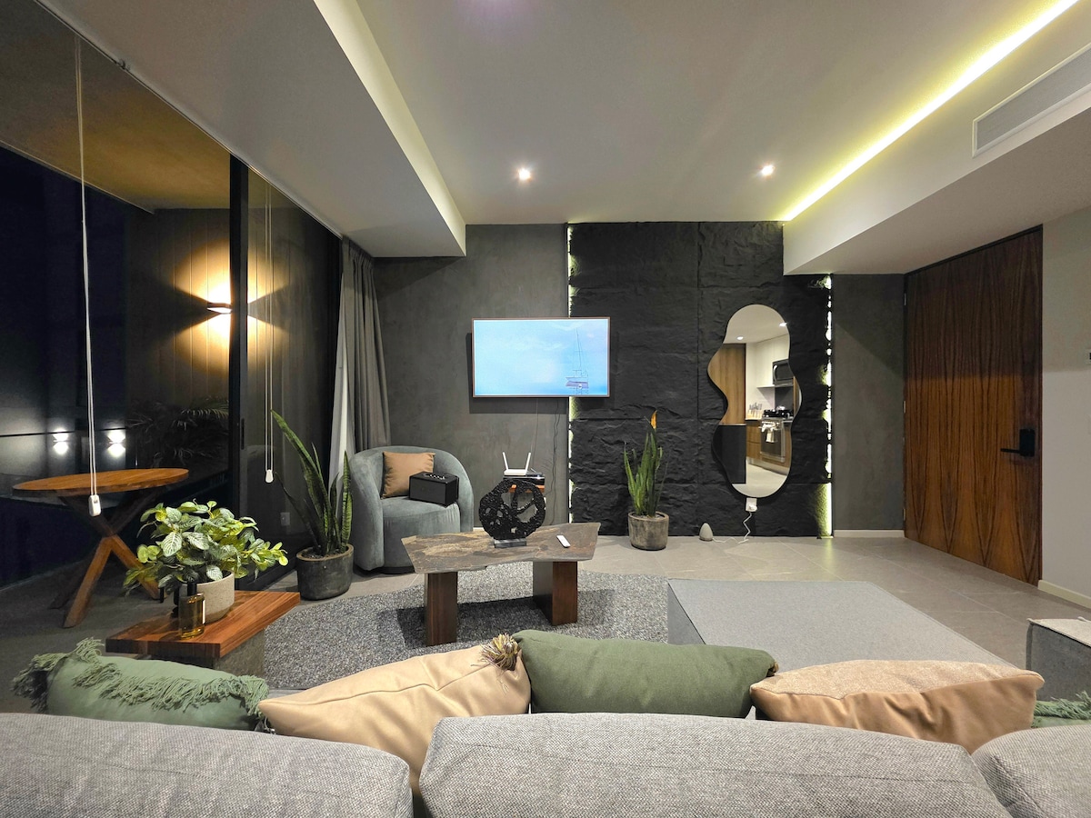 El departamento cuenta con aire acondicionado en RECÁMARA PRINCIPAL. El servicio se contrata por separado. Costo adicional de $99.00 pesos por día. Relájate en este espacio tan tranquilo y elegante. Totalmente nuevo con dos habitaciones. Espacioso para 4 huéspedes. Con opción para un 5to [con costo extra]. Con amenidades [gimnasio, ludoteca, espacio de trabajo, cine]. Excelente ubicación. En el sur de la ciudad. A 5 minutos de la plazas y supermercados. Haremos que tu estancia sea placentera.