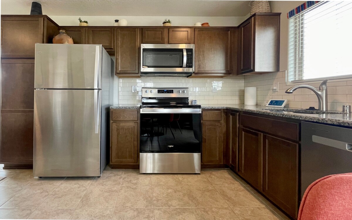 Ven y relájate. Disfruta de palomitas de maíz con toda la familia viendo Netflix en este tranquilo lugar para hospedarte. Barrio tranquilo, apto para familias y mascotas, a 10 minutos de Sandia Peak, con fácil acceso a la I-40, a la zona residencial, a rutas de senderismo por la montaña, al cine Icon, al parque y mucho más. Con un gran patio trasero vallado, cuenta con un aire acondicionado y calefacción nuevos. Además, dispone de un garaje para un auto. Nuestra casa está diseñada para ofrecerte una estancia cómoda y relajante.