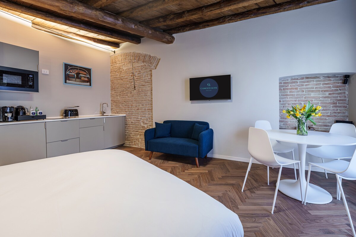 El departamento está ubicado dentro del Palazzo Chizzola, una residencia del siglo XVI en el centro histórico. La casa permite a los huéspedes pasar estancias agradables inmersas en un ambiente de épocas pasadas. Los espacios representativos dan la posibilidad de transformar la casa en un "salón de negocios" tanto para reuniones en el lugar como para videollamadas. La casa se encuentra a pocos pasos de lugares de interés histórico y artístico como el Teatro Grande e Sociale, la Pinacoteca, el Museo Santa Giulia, el Duomo.