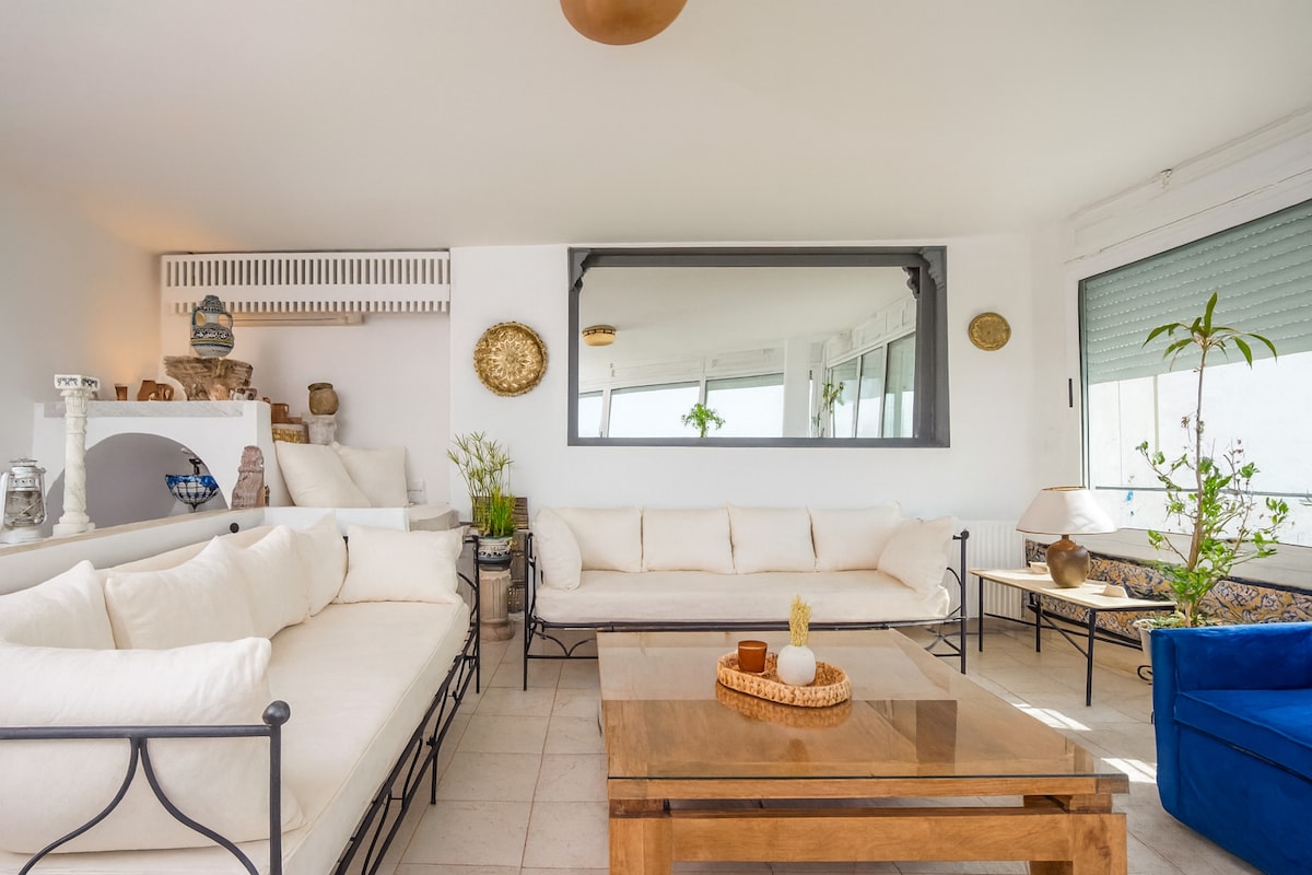 Encantadora y acogedora casa en una zona residencial y tranquila de Túnez. Disfruta de una vista panorámica de Grand Tunis desde el balcón. El espacio es espacioso y luminoso, con una decoración elegante que refleja mis pasiones. Cada zona emana un ambiente acogedor, creando un ambiente acogedor donde los detalles cuidadosamente elegidos se destacan por la luz natural. El ambiente se integra a la perfección con mis intereses, ofreciendo a los huéspedes una experiencia de estadía única.