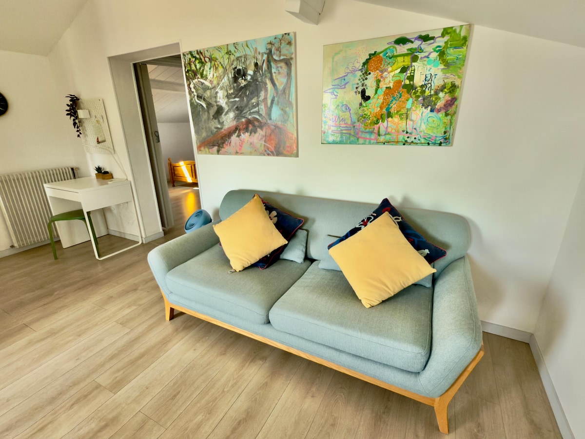 ¡Loft estudio a 20 minutos de las playas de las Landas en el corazón de un entorno vegetal tranquilo y silencioso! Este hermoso espacio nuevo de 70 m2 bajo techo inclinado está diseñado para la relajación... Situado en la planta superior de nuestra casa pasiva de madera, luminoso con su pared de cristal, incluye acceso exclusivo a una azotea de 30 m2 para almorzar o tomar el sol. Un loft en 5 zonas: noche (cama de 180), sala de estar con Apple TV, Itunes, Netflix, biblioteca, cocina-comedor y cuarto de baño con ducha con lavadora/secadora. ¡Ideal para una pareja!