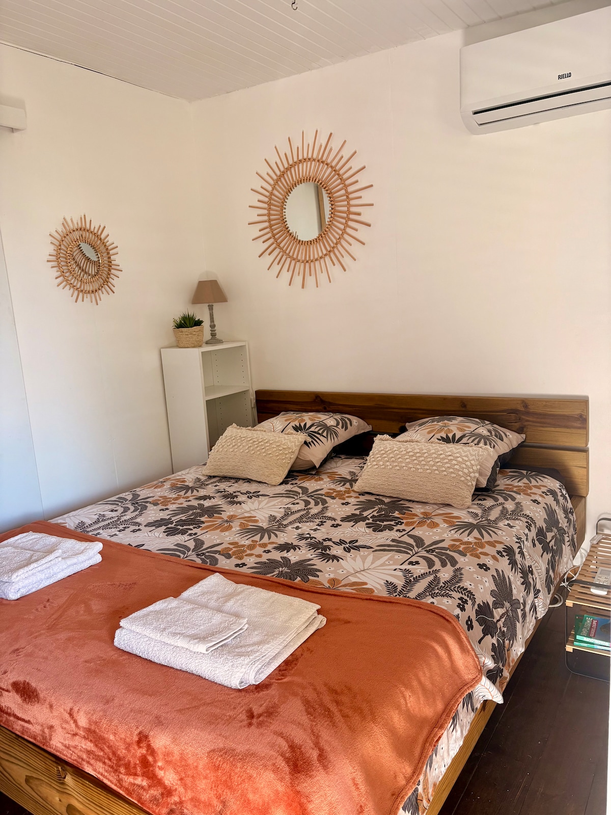 En casa del anfitrión, agradable estudio reciente de 20 m2 para dos personas Acceso privado, zona verde en una zona tranquila, vistas verdes frente al mar sin vecinos. Habitación con aire acondicionado con cama grande con dosel de 180 cm y mosquitera. Amplio cuarto de baño con ducha. Pequeña cocina americana equipada. Acceso wifi y ropa de cama. ¡Tranquilo y apacible, ambiente natural! Será un placer recibirle muy pronto.