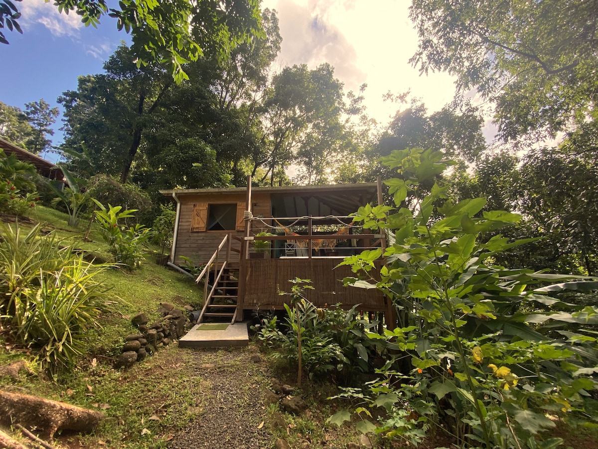 Tiny House encaramada en una colina a 400 metros de altitud en medio de un huerto frutal. accesible por un camino forestal en buen estado. Lugar tranquilo y aislado entre el mar y la montaña con una vista dominante. Alojamiento naturalmente fresco y ventilado sin mosquitos. Alojamiento ecológico. Situado a 10 minutos de la playa de Leroux a 20 minutos de la playa de Malendure a 20 minutos de la playa de Grande Anse Adecuado para personas que deseen desconectar, descansar o reponer energías.
