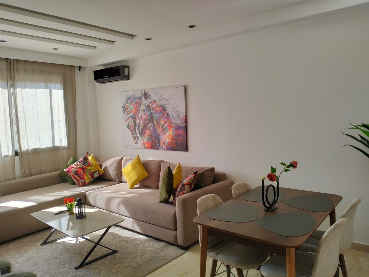 Un flechazo Disfrute de su estancia en este tranquilo apartamento limpio y cómodo ,ideal para viajes de negocios y visitas turísticas ,perfecto para parejas. Situada en el corazón de Casablanca ,todo está al alcance de la mano, y la estación de tranvía está a solo 1 minuto a pie. El apartamento tiene un dormitorio acogedor, un baño impecable, una cocina totalmente equipada y un luminoso salón equipado con una gran pantalla de Tv y dos terrazas balcones.