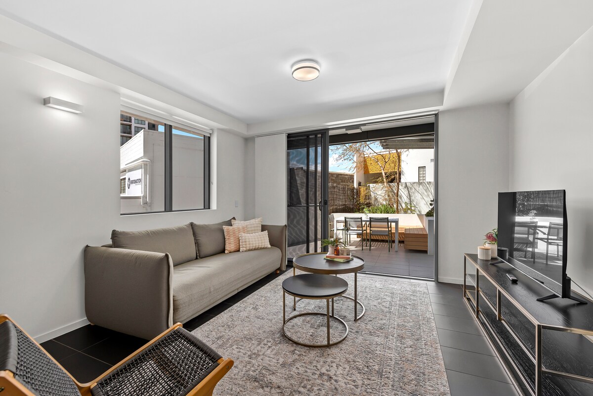 Alójate en el corazón de Bowen Hills, a unos pasos de los restaurantes de King Street, Strike Bowling y a 1 minuto a pie de Brisbane Showgrounds. Este elegante apartamento iluminado por el sol tiene capacidad para 4 personas con una cama tamaño queen y un lujoso sofá cama en la sala de estar (ver fotos). Totalmente equipado con cocina, lavandería, wifi, TV inteligente y aire acondicionado. A solo 10 minutos a pie de RBWH, la estación de Bowen Hills y Fortitude Valley. Perfecto para parejas, familias o viajes de trabajo, tu acogedora base para explorar Brisbane. Diseñado para 2 personas, pero tiene capacidad para 4 personas.