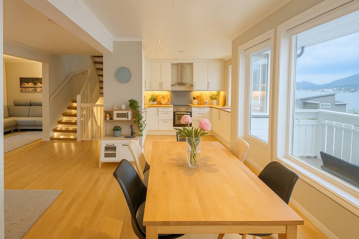 Casa familiar en Ålesund. 3 pisos, 3 dormitorios, 2 baños, cocina totalmente equipada, lavandería, gran sala de estar, oficina, equipo para bebés y terraza con vistas al mar. Camina a caminatas, playas y el Parque Marítimo Atlántico. Zona tranquila, pero a solo 10 minutos del centro de Ålesund. Perfecto para familias, amantes de la naturaleza y trabajo remoto. Esta es nuestra casa familiar, y mientras preparamos la casa para nuestros huéspedes, es posible que encuentres artículos personales como ropa en los armarios y productos básicos de alimentación en la cocina.