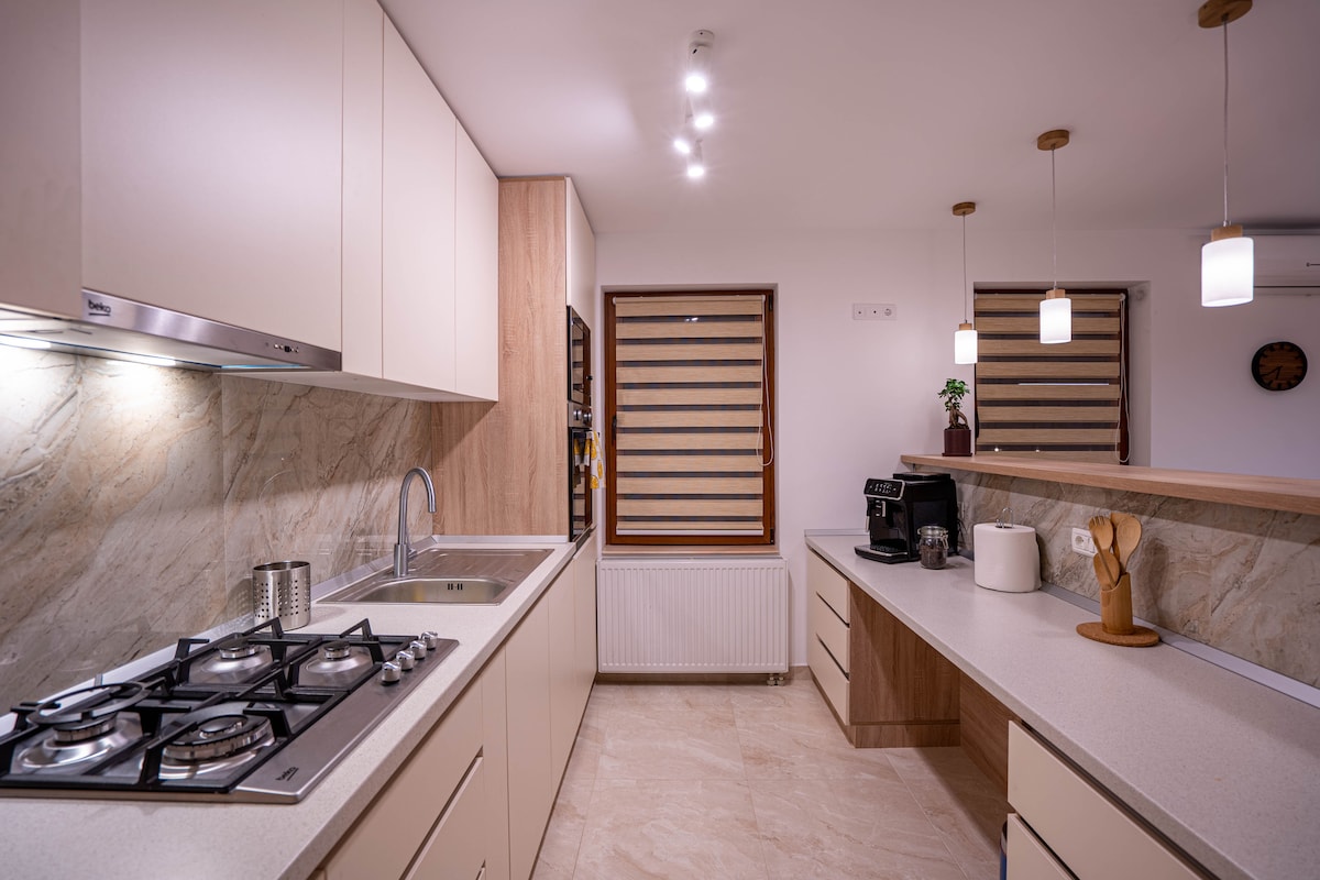 Creamos un espacio para personas especiales🥰❤️ Elegante, con estilo y totalmente equipado para una estancia inolvidable con tu ser querido. El apartamento tiene 2 habitaciones y está dividido: 1 dormitorio, cocina, sala de estar, sauna, baño, jardín. La ubicación tiene un cenador equipado con barbacoa, horno, estufa, comedor interior o exterior. Situado a 8 km del centro de Brasov, cerca de Poiana Brasov, zonas de esquí de Predeal, Castillo de Peles, Bran, Parque de Aventura/Paradise Acuático
