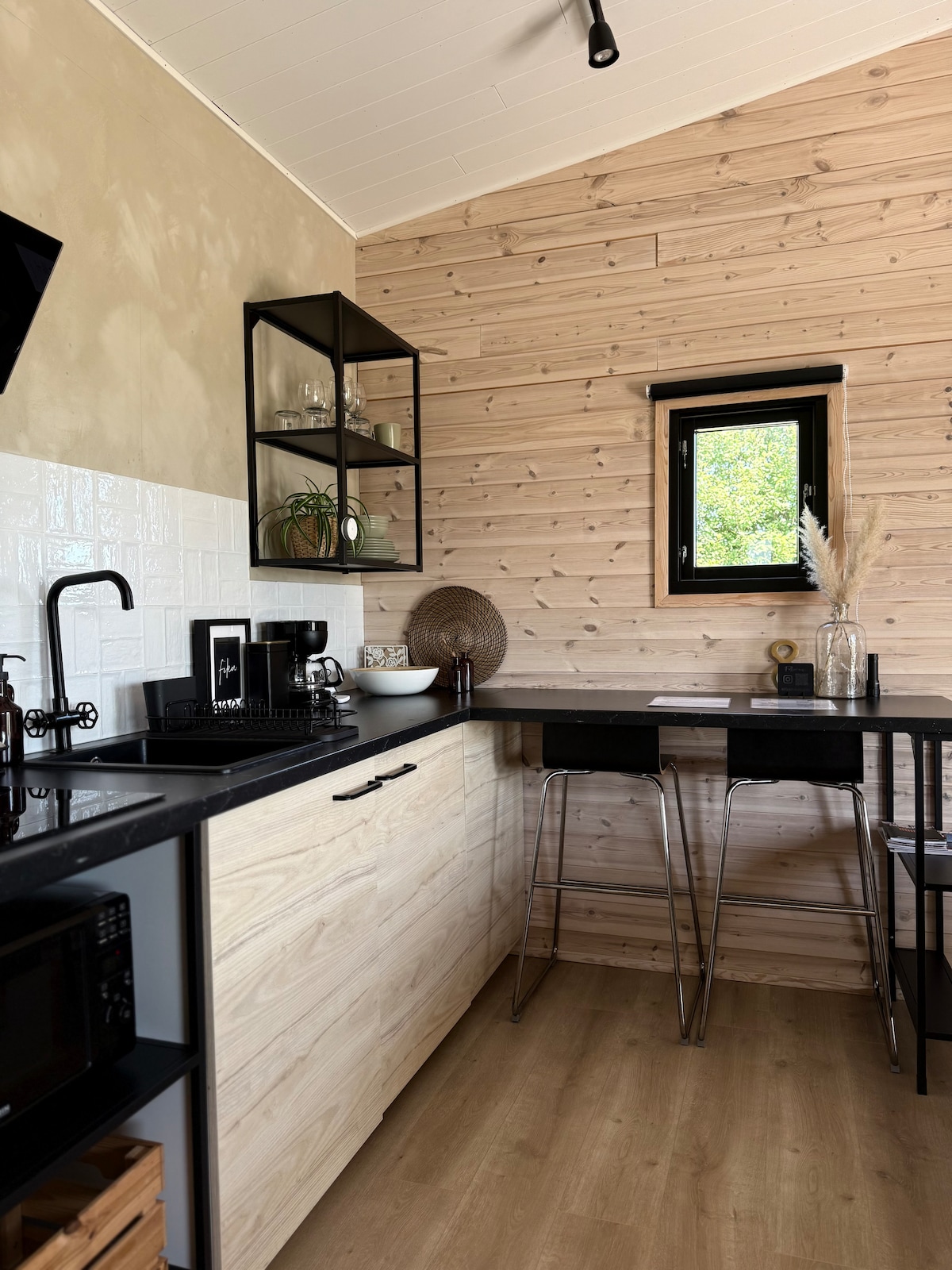 Bienvenido a nuestra acogedora minicasa "Cozy Elk", un oasis relajante con proximidad a la naturaleza. Una minicasa elegantemente diseñada con todo lo necesario para disfrutar de una estancia cómoda. Con grandes ventanales que dejan entrar a la naturaleza, una cómoda cama en el loft, cocina y baño totalmente equipados, salón con sofá cama y estufa de leña para mayor comodidad. Disfruta del café de la mañana en la terraza con un buen libro o da un paseo por el bosque. Excelente para una escapada relajante.