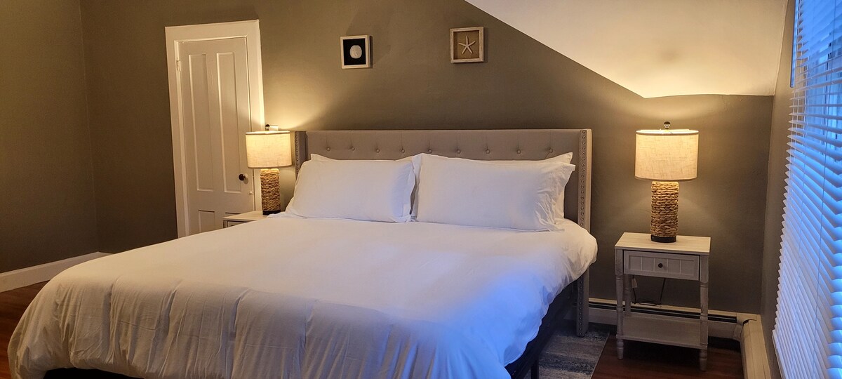 ¡Bienvenido a tu casa de estilo Cape Cod! Cama tamaño king en el dormitorio principal, 2 camas tamaño queen en el segundo dormitorio. Zona de juegos para divertirse uno a uno. Cocina completa, baño completo y todos los servicios necesarios para estancias largas o cortas. ¡Puerto de carga de vehículos eléctricos de nivel 1 incluido con tu estancia! ¡Tu alojamiento de estilo Cape Cod se encuentra en el tercer piso de una casa histórica de 1852! Estamos deseando recibirte. Proporcionamos gratis: ✔Café, también descafeinado/té Wifi ✔gratuito ✔Netflix/cable/Disney+ Artículos de aseo y jabones de✔ calidad