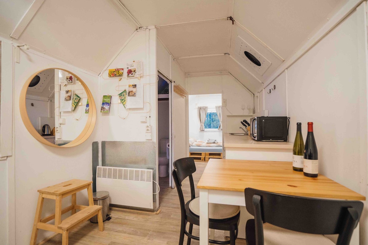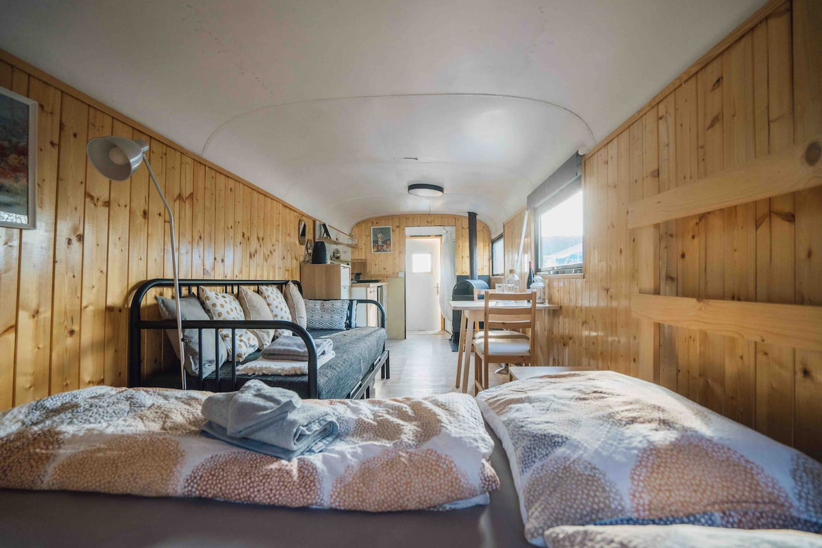 La cabaña está situada en las afueras del pueblo en una bonita ubicación en medio de la naturaleza. Es independiente, con una chimenea adyacente donde se puede hacer una barbacoa, y tiene su propia entrada. Es posible aparcar delante de los garajes de la casa familiar detrás de la valla, el huésped alojado tiene su propio mando a distancia para la puerta y luego caminar 100 m por la acera hasta la cabaña.