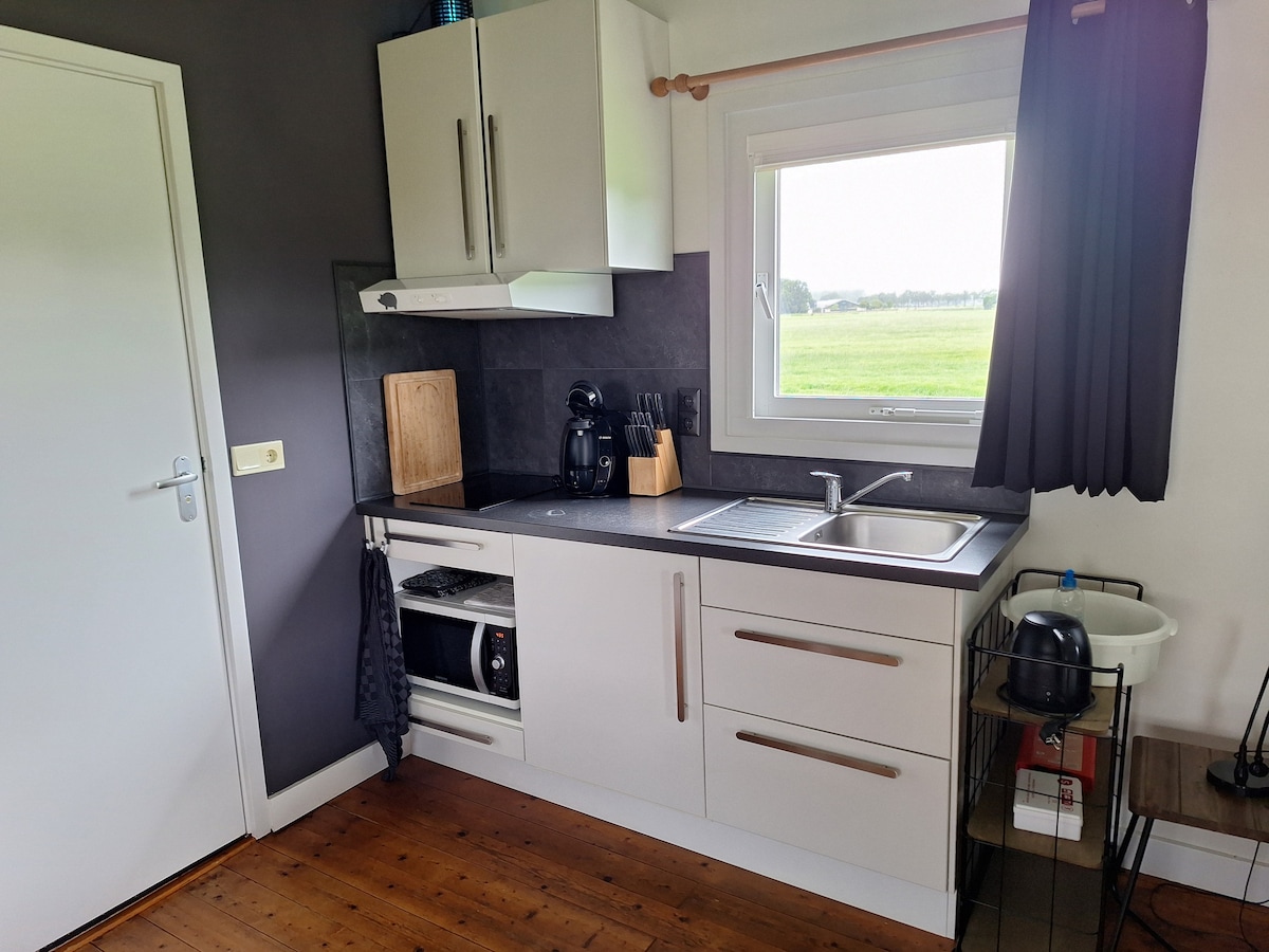 Guesthouse Pleegste es una casa de jardín de madera a las afueras de Raalte con un acogedor porche con estufa de leña. Verás los prados. Con una entrada privada, ofrece mucha privacidad. La casa de huéspedes consta de una habitación grande de 30 m² (con calefacción central), con una sala de estar y comedor, una cocina americana (nevera, placa de inducción de 2 quemadores, microondas combinado, cafetera, utensilios de cocina, etc.) y un colchón doble. La oferta es SIN desayuno. Hay una barbacoa disponible para alquilar en el lugar.