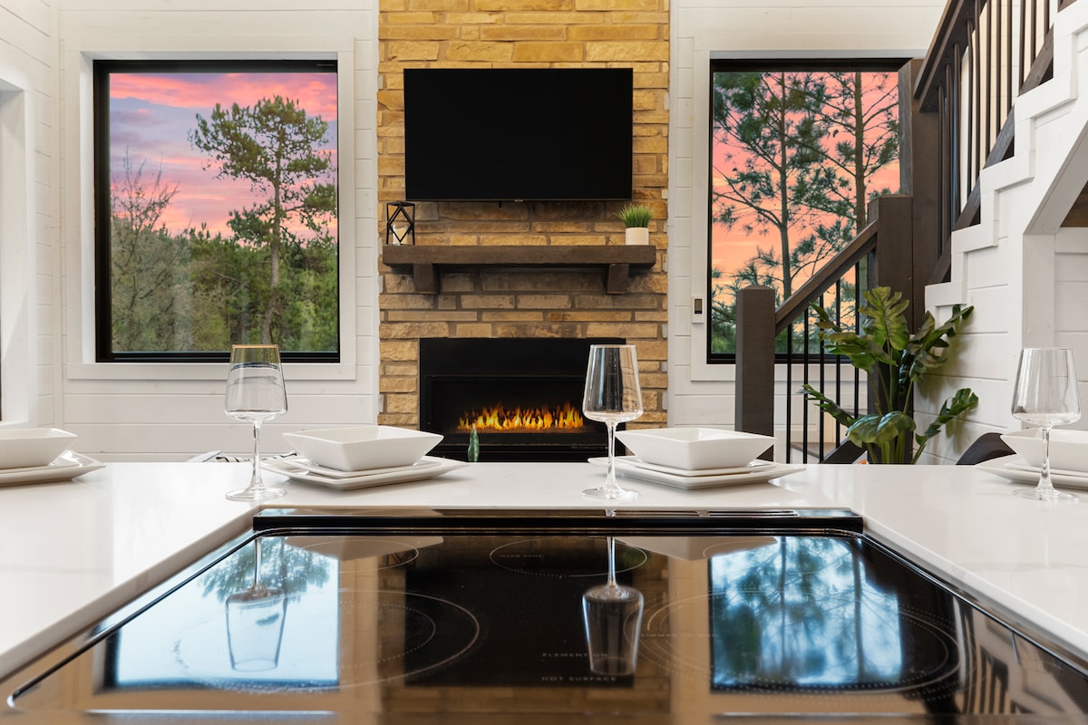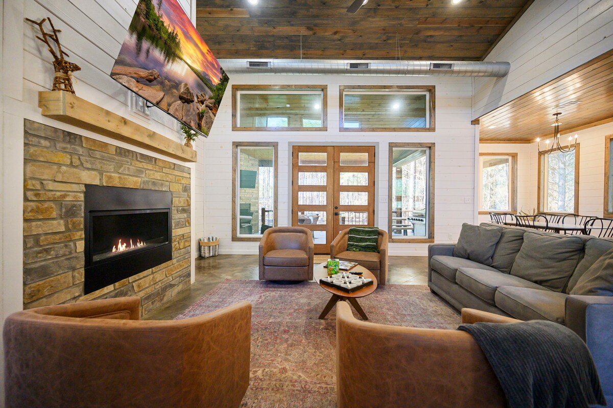 Cabaña de lujo moderna | 2 suites tamaño king • Cargador para vehículos eléctricos • Se admiten mascotas Descubre The Modern, una impresionante cabaña de diseño avanzado en 3,5 acres privados en Broken Bow. Con techos altos de 18 pies, ventanas grandes, una cocina de chef totalmente blanca, estufa de leña y 2 suites king de lujo (una con bañera profunda). Disfruta de las vistas al bosque, acurrúcate junto al fuego y carga tu vehículo eléctrico en el lugar. ¡También se admiten perros! Reserva hoy una escapada inolvidable.