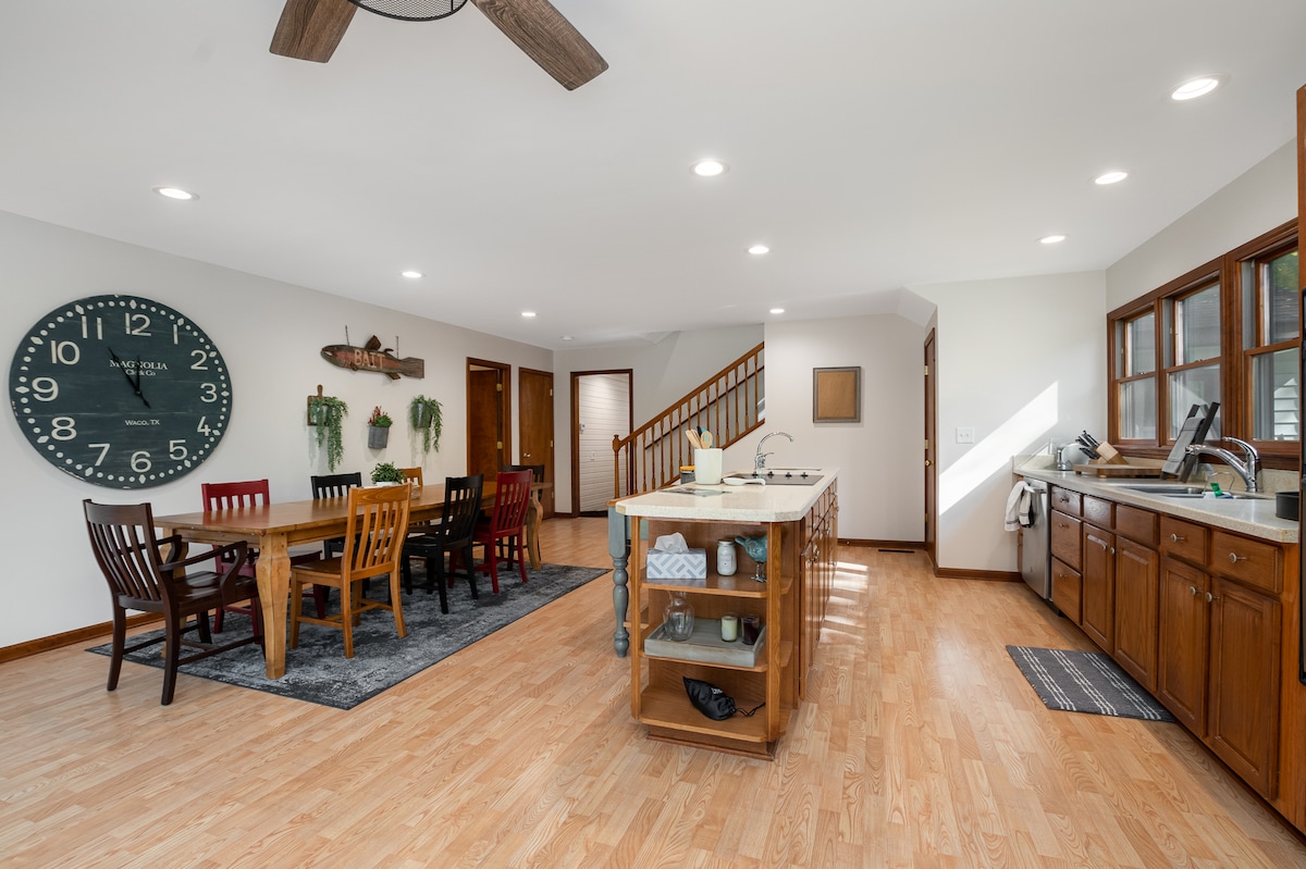 Disfruta de una escapada de fin de semana en esta acogedora casa enclavada en 40 acres de tierra boscosa con rutas de ciclismo, senderismo, paseos a pie y su propio lago privado y barco de pedales. Tómate un descanso y relájate en el muelle o junto a la hoguera mientras tú y tu familia y amigos os desconectáis... Da un corto paseo en coche hasta el pintoresco centro de Brookville, experimenta el hermoso lago Brookville y el campo de golf, e incluso echa un vistazo al Wolf Habitat & Canoe Rental justo al final de la carretera. ¡Esta es la escapada que necesitas!