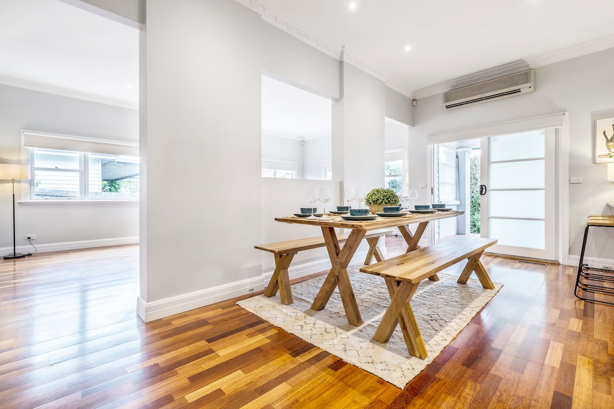 Siéntete como en casa en una casa de trabajadores originalmente restaurada en el antiguo Brunswick. Genial para ir a las tiendas locales, el transporte público y Sydney Road, mi casa es el lugar perfecto para alojarte y explorar Melbourne, así como para sentirte como en casa en la parte más antigua de Brunswick. A solo 20 minutos, de 40 a 45 dólares en Uber desde el aeropuerto, tienes muchas opciones para alojarte, además de un pequeño patio trasero y un estudio abierto para ver a los niños jugar o disfrutar del sol de la tarde.