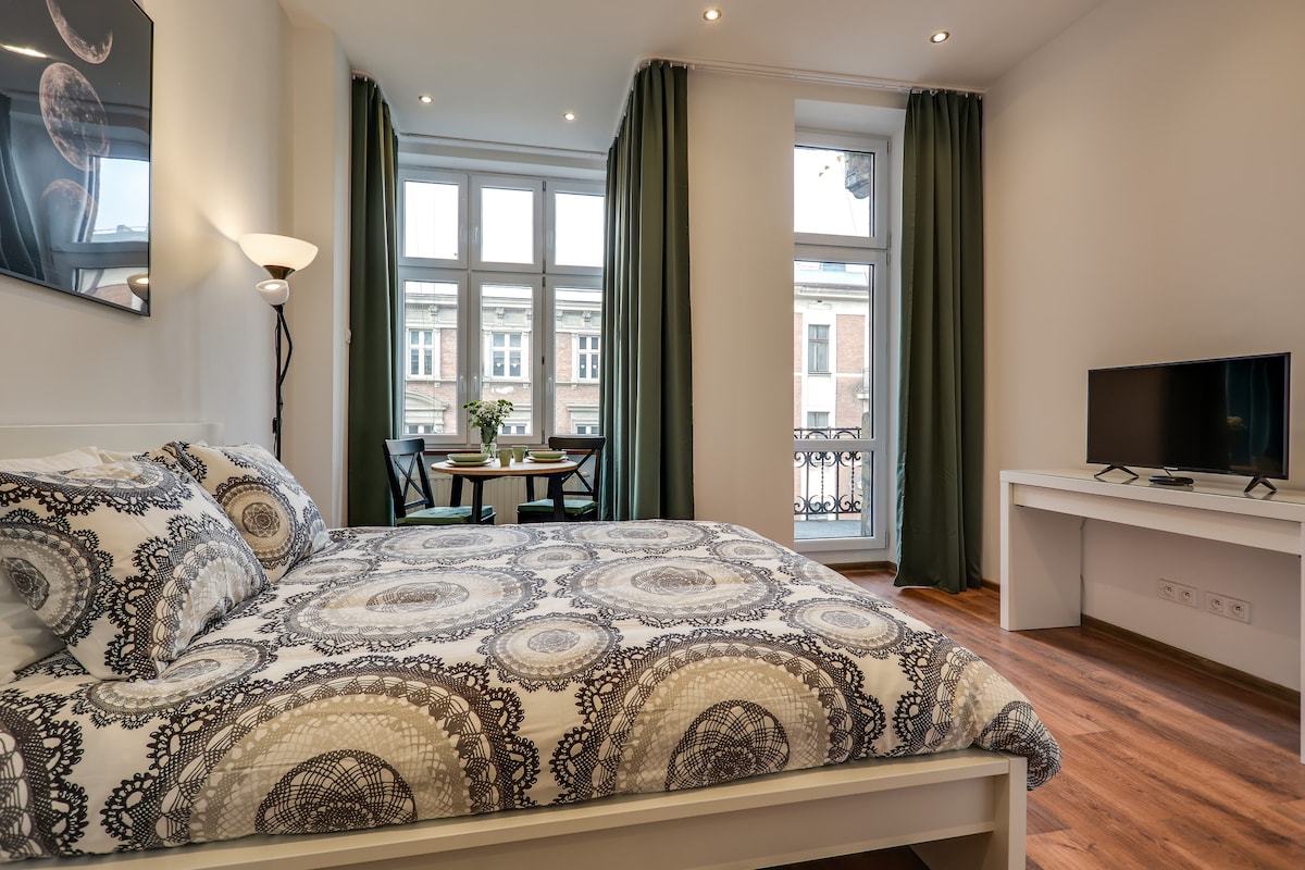 Excelente ubicación, a 450 metros del Spodek Arena, el Centro Internacional de Congresos, la Zona Cultural de Katowice. Llegada autónoma, recepción de lunes a viernes de 7:00 a. m. a 7:00 p. m., seguridad y estacionamiento gratuito y vigilado. Estudio con aire acondicionado, seguro, totalmente equipado y tranquilo. Cerca de la tienda de comestibles Żabka, tiendas, una farmacia, una pizzería y otros... La principal arteria de transporte público está a la vuelta de la esquina. A 5 minutos en auto del centro comercial Silesia (1,2 km), Legendia, Silesian Park y el zoológico (2,2 km).