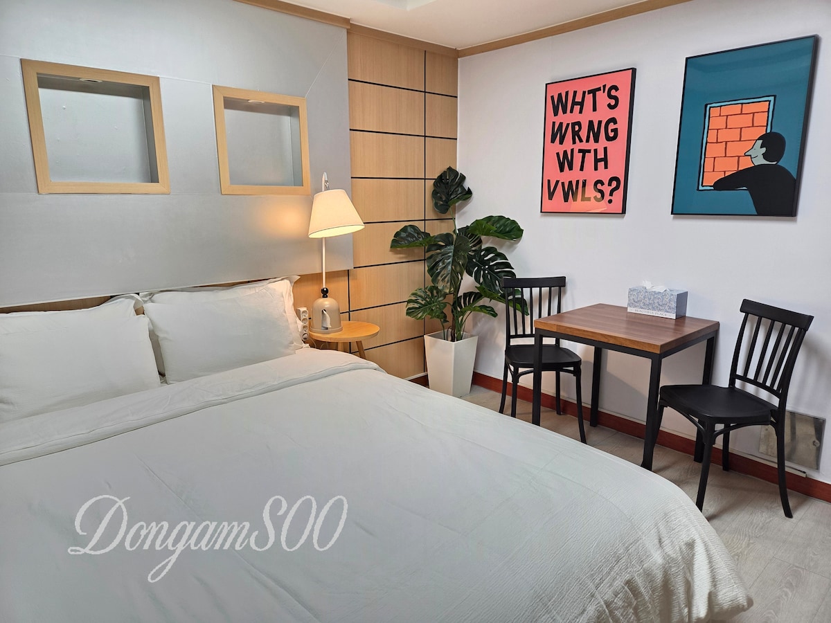 인천 동암역 2분거리에 위치한 저희 Dongam SOO는 넓은 공간과 합리적인 가격으로 장기 여행시 머물기 적합하고 도심까지 편리하게 이동하기 좋은 숙소입니다. ▪︎동암역 도보 2분 명동 지하철로 59분 소요 홍대입구 지하철로 47분 소요 ▪︎소방 시설 완비 ▪︎매일 새 수건4장,생수 무료제공 ▪︎24시간 CCTV ▪︎룸 별 카드키로 출입 (분실시 10,000원 비용발생) ▪︎단독 사용: 분리형 개인 화장실, 초고속 인터넷,TV,냉장고,에어컨, 퀸침대,베개,옷걸이,테이블,의자, 헤어드라이어,온열매트, 수건,휴지,샴푸,샤워젤, 컨디셔너,비누,치약 제공 ▪︎주차불가