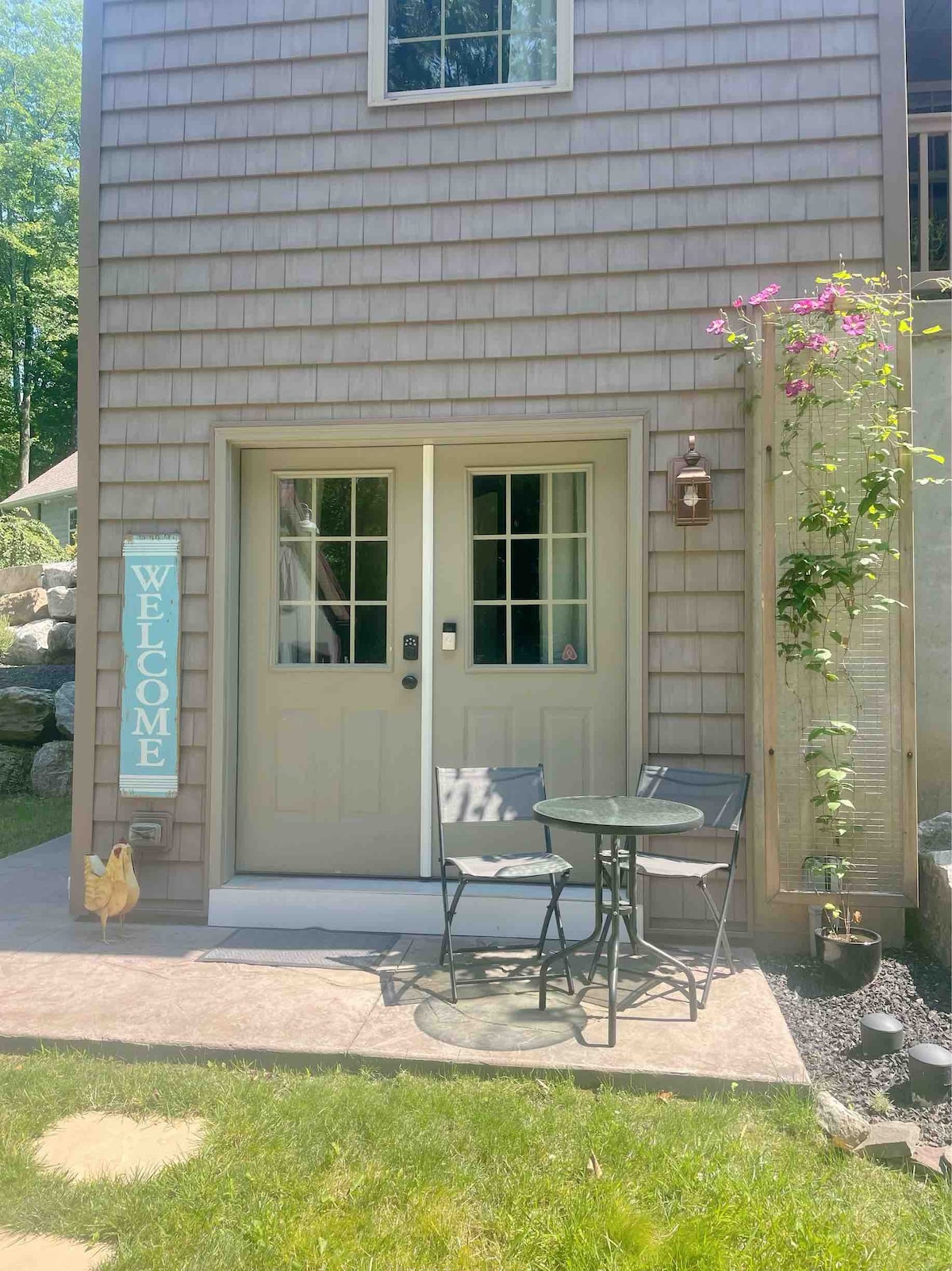 Un pequeño pero acogedor bungalow en una propiedad tranquila que bordea un parque estatal. Explora las ciudades fluviales a lo largo del Delaware, incluidas Frenchtown, New Hope y Lambertville. ENTREGA DE BAGEL FRESCO incluida la primera mañana. Ofrece estacionamiento privado (junto a la puerta principal), cargador de vehículos eléctricos, cama tamaño queen, cocina pequeña y suelos con calefacción en la cama y el baño. Da un paseo matutino a lo largo del canal, disfruta de una cena tranquila al aire libre en la mesa para dos y termina la noche relajándote junto a la chimenea.