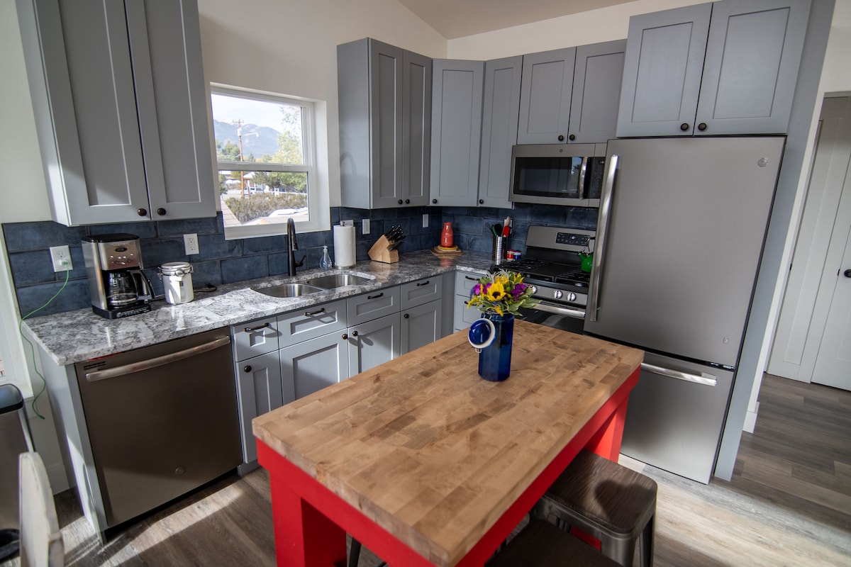 Este nuevo estudio, situado en el centro, encarna el espíritu de la calidad escandinava de Hygge. Es pintoresco, sencillo, cálido y acogedor. Te encontrarás en el centro de una vibrante calle principal y a un rápido paseo a pie, en bicicleta o en coche de toda la aventura y las fronteras abiertas que ofrece nuestro valle. Tienes tu propio patio, con vistas a los picos Colegiados y a la cordillera Mosquito. El estudio cuenta con una cama tamaño king y un sofá cama tamaño queen de espuma viscoelástica de lujo, así como una cocina completa.