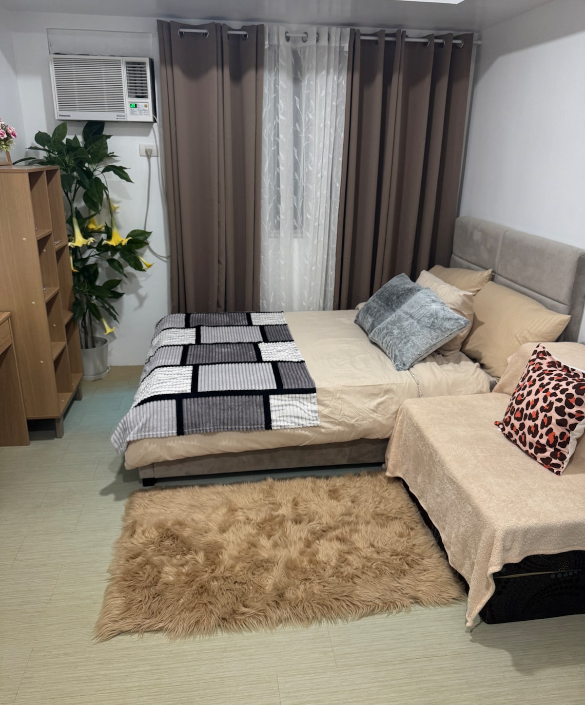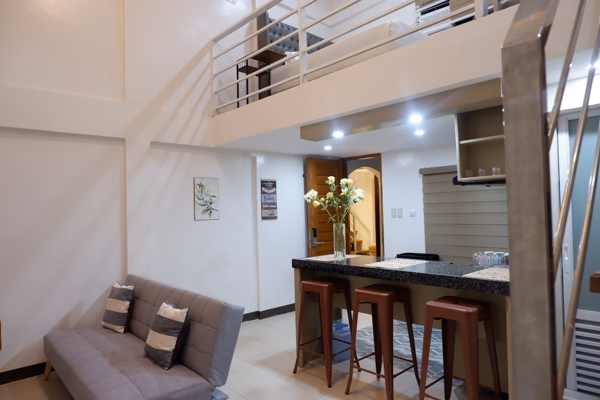 Ideal para familias de 4 ¡Nuestra unidad de un dormitorio recién inaugurada ya está abierta para huéspedes! Apartamento de un dormitorio. La habitación está equipada con lo siguiente: * Cama tamaño queen * Sofá cama (2 plazas) * 2 aires acondicionados divididos * Smart TV (con Netflix) de 55 pulgadas * Armario enorme para ropa *Microondas * Wifi *refrigerador * Arrocera * Cocina de inducción * Utensilios de cocina y comedor * Mesa de comedor * Sofá * Ducha fría y caliente Las comodidades incluyen: * Piscina. * Gimnasio * 2 tiendas 7/11 (1 abre las 24 horas; 1 abre hasta las 23:00 h)