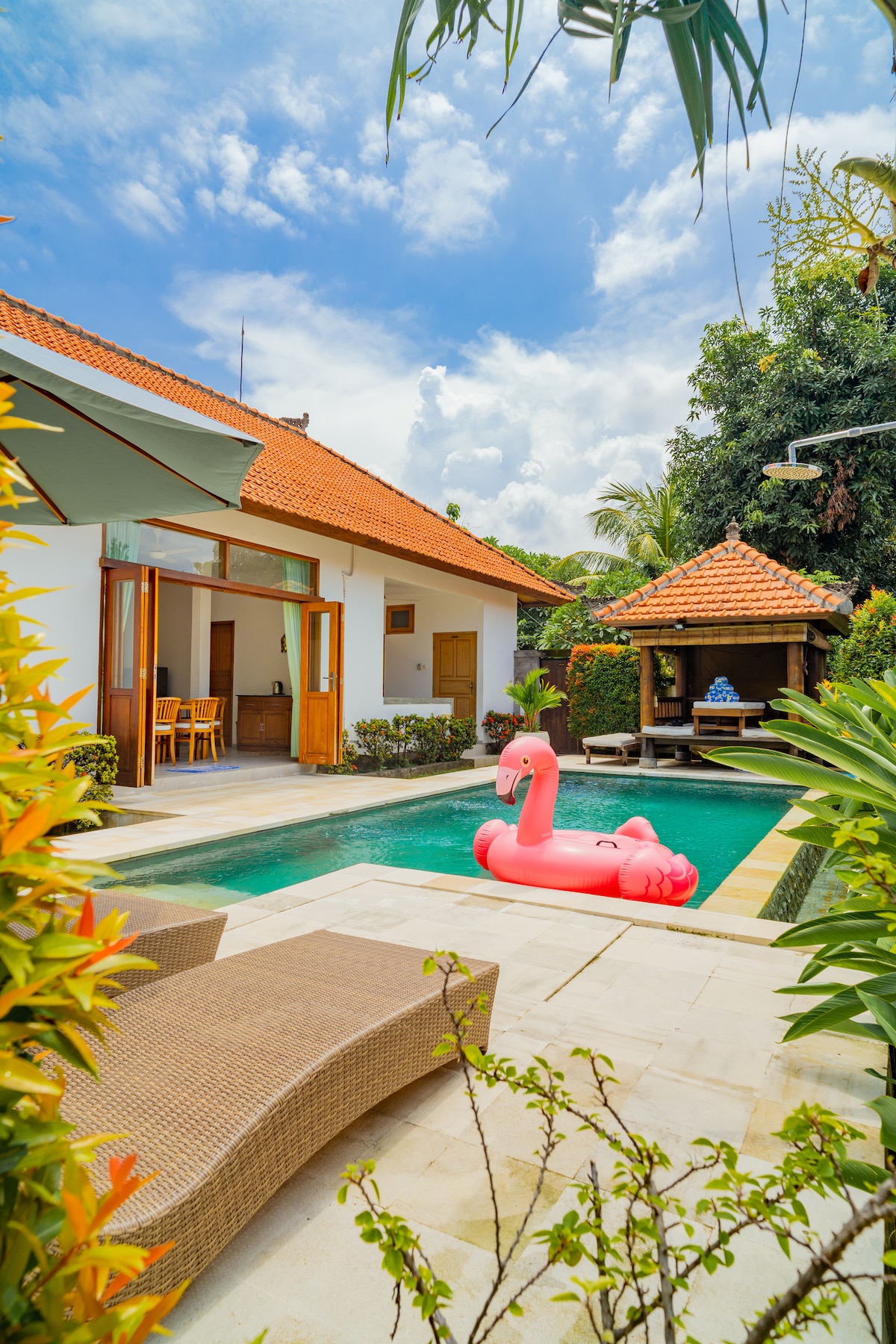 La Villa Senja es una casa única frente a la playa con un ambiente lujoso y aún auténtico debido al interior único de estilo balinés hecho a mano que cuenta con una sala de estar abierta con billar profesional, 4 dormitorios con baño privado y una enorme piscina (18x6 metros con piedras balinesas naturales). Relájate en el cenador, observa el impresionante atardecer desde la terraza, toma un cóctel en la piscina y disfruta de tu tiempo en Bali.