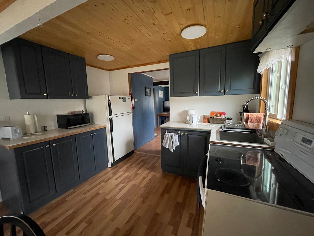 Unas pocas hectáreas a pocos minutos del centro de Smithers. La vista de la cabaña ve hasta los picos de la bahía de Hudson. Kathlyn Creek serpentea a través de la propiedad, lo que la convierte en un gran refugio de verano e invierno. Puede ser una cabaña "pequeña", pero el loft de un niño y el dormitorio en suite hacen que sea una escapada acogedora para una familia de 4 o amigos. Los niños menores de 3 años se quedan gratis. La cocina está equipada para tus primeros desayunos, incluidos huevos frescos diarios.