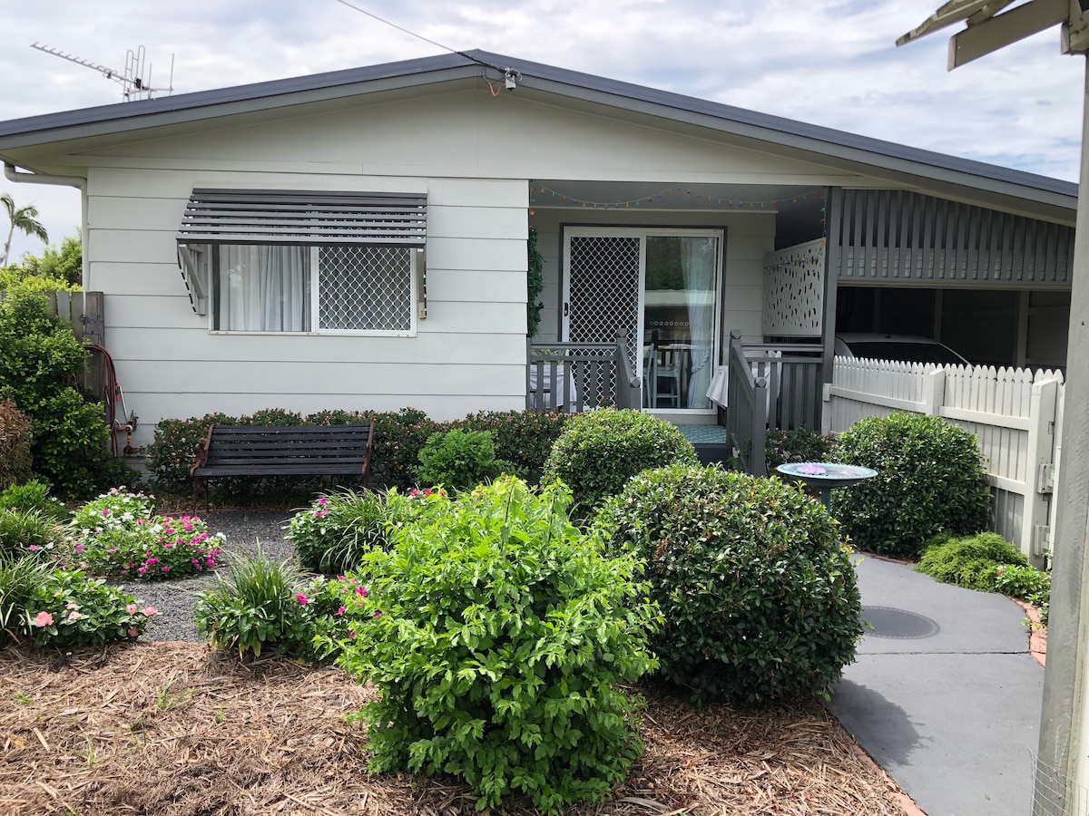 Un hogar que es tranquilo, pacífico y reparador Ideal para viajes de negocios . Cerca de los hospitales y el centro de la ciudad. Cocina bien equipada 2 dormitorios tamaño queen con Ventiladores de techo yaire acondicionado Acceso al jardín. A 15 minutos de playas,Mon Repos para las tortugas y Marina para Lady Musgrave Cruises. Centro comercial cercano IGA, PO, tienda de botellas, peluquería, masajista, cafetería, farmacia, agencia de noticias, carnicería, centro médico Los jardines botánicos están cerca con un restaurante y la casa de Bert Hinkler y el tren de vapor