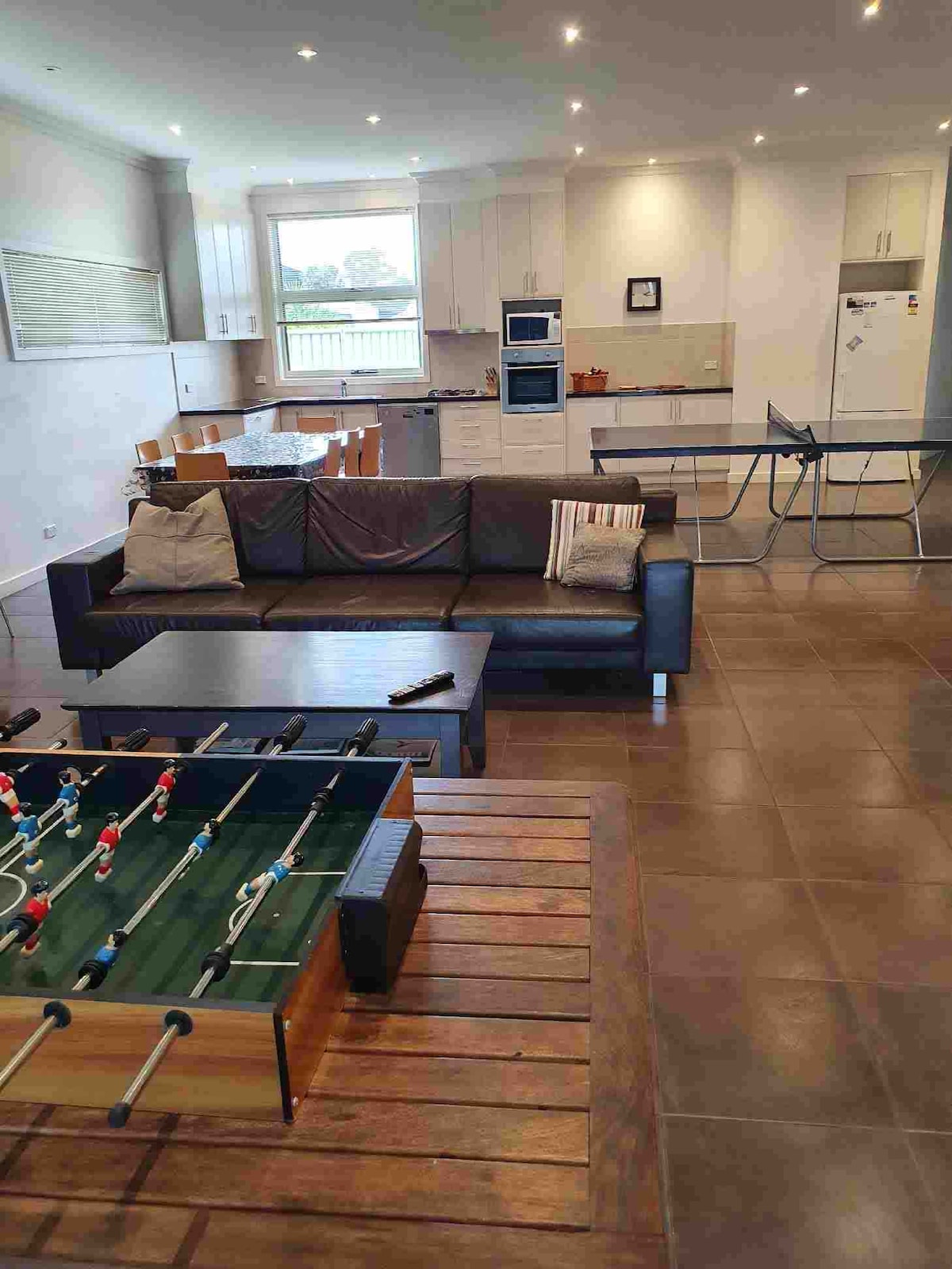 Agrestic Yarrawonga es una casa de lujo única en su clase, diseñada para grupos grandes y varias familias. Con dos alas idénticas, puede alojar cómodamente a más de 16 huéspedes con ropa de cama de calidad (sin literas). Disfrute de WiFi rápido, Netflix, varias zonas de estar, un televisor de 85”, una cocina gourmet y entretenimiento en el interior y al aire libre con una parrilla de gas. Ubicada en un terreno de un acre con estacionamiento seguro, cochera, canasta de baloncesto, césped y una piscina a la sombra, es ideal para estadías relajadas en grupo.
