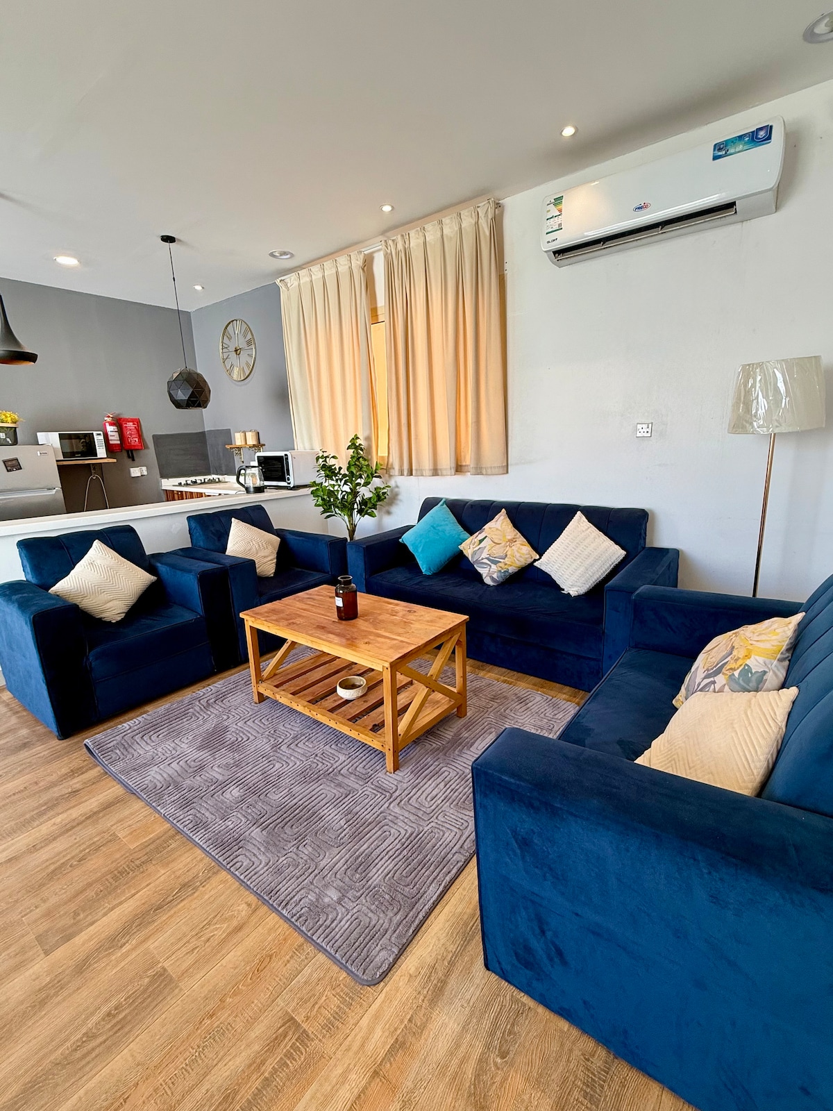 Experimenta la mezcla perfecta de lujo moderno y comodidad tranquila en un apartamento de hotel con un diseño bohemio cálido y moderno, ubicado en el barrio de Fayziyah, junto al jardín, a solo unos pasos. La ubicación también está cerca de todas las necesidades diarias El departamento se encuentra en un hotel moderno con una hermosa entrada y pronto tendrá algunos servicios del hotel como piscina, gimnasio y sección de masajes. Todas las necesidades están disponibles en el apartamento y cuenta con un dormitorio espacioso con una cama principal equipada con fieltro y una sala de estar con su hermoso diseño y una pantalla inteligente de 70 pulgadas con Netflix, YouTube y Shahid, hay una sesión de barra lateral