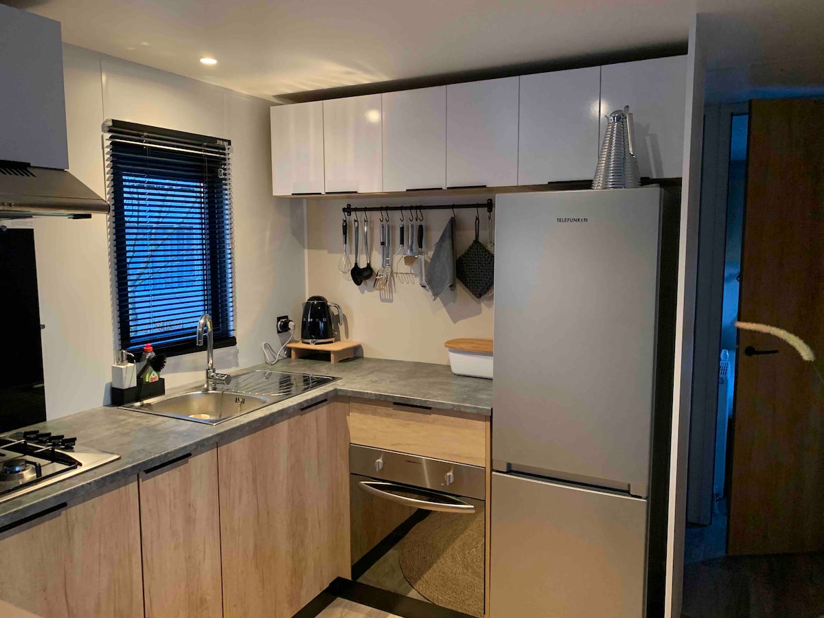 CHALET VACACIONAL DE LUJO DE MODA DE 45 M2 apto para 4 personas. Elegante cabaña amueblada de alta gama, porche parcialmente cubierto, amplio jardín con estacionamiento privado gratuito junto a la cabaña. En última instancia, disfruta y está equipado con todos los lujos y comodidades; - aire acondicionado -cv - Cocina abierta espaciosa, moderna y totalmente equipada con sal, pimienta, azúcar, té, hierbas, etc. - Lavaplatos - Horno - Microondas. - Estufa de gas - Refrigerador grande con congelador. - baño elegante -aparte el inodoro. - 2 dormitorios. - 2 amplios armarios. -muggenhorren