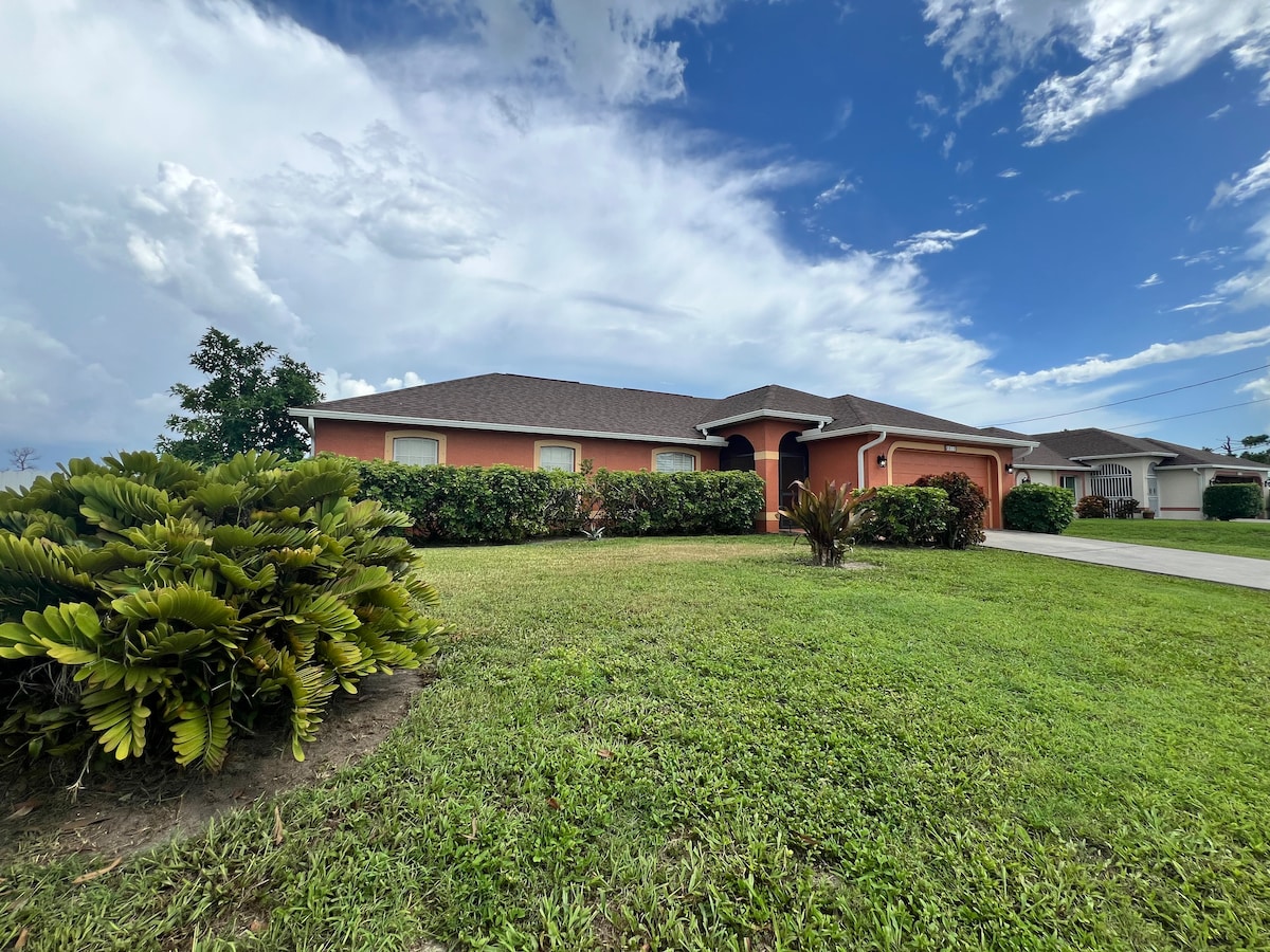 ¡Escapa al Lujo! Te cubrimos - ¡sin tarifas de servicio! Descubre nuestro retiro de 5 estrellas en Cape Coral: WiFi de alta velocidad, TVs inteligentes, ropa de cama premium y más. Relájate con estilo y serenidad. Tu refugio pacífico te espera! Ubicado en el corazón de Cape Coral, nuestro espacio meticulosamente diseñado promete una estadía inolvidable para el viajero exigente. Relájate con toda la familia en este lugar pacífico para quedarse.
