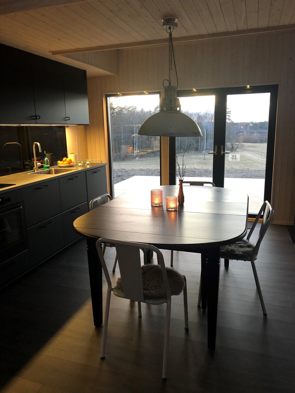 Lilla Lyngabo está rodeada de exuberantes campos y prados, con el bosque a sus espaldas. A través de las grandes secciones de cristal, se puede salir directamente a la naturaleza, tanto desde el dormitorio como desde la cocina. Como único huésped, disfrutará de la tranquilidad y la belleza que rodea a Lilla Lyngabo. A pesar de su aislamiento, está a solo 2 km del campo de golf más cercano, a 4 km del mar y a 10 km del centro de Halmstad y Tylösand. En su camino hacia el mar, encontrará la reserva natural de Haverdal, con las dunas más altas de Escandinavia y hermosas rutas de senderismo.