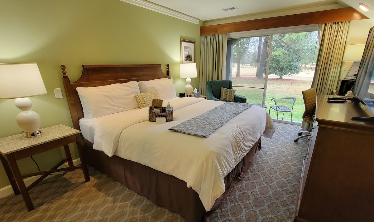 Esta hermosa unidad de 1 dormitorio y 1 baño tiene una superficie acogedora de 400 pies cuadrados y se encuentra en el exclusivo barrio de Kingsmill. Esta unidad de la primera planta ofrece una cama tamaño king con un patio privado que da al noveno hoyo del campo River Course en Kingsmill. Disfrutarás del lujoso baño completo con combinación de ducha y bañera y acabados mejorados. En el dormitorio también encontrarás un escritorio de ordenador, una silla de estar de gran tamaño, una mininevera, un microondas, una cafetera Keurig y un televisor inteligente Roku de 50 pulgadas con cable.