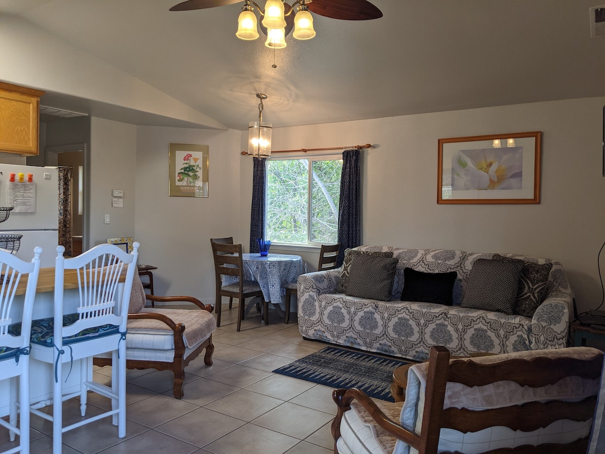 Este encantador estudio es acogedor, limpio y hermoso. Estamos ubicados en el límite de la ciudad universitaria, a una milla del centro de la ciudad y cerca de lugares emblemáticos de Chico (Bidwell Park, Bidwell Mansion, varios lugares de música y teatro, restaurantes y cafeterías locales, y más). Excelente senderismo, ciclismo, observación de aves; excelentes restaurantes y tiendas; universidad de clase mundial; música y teatro; todo cerca.