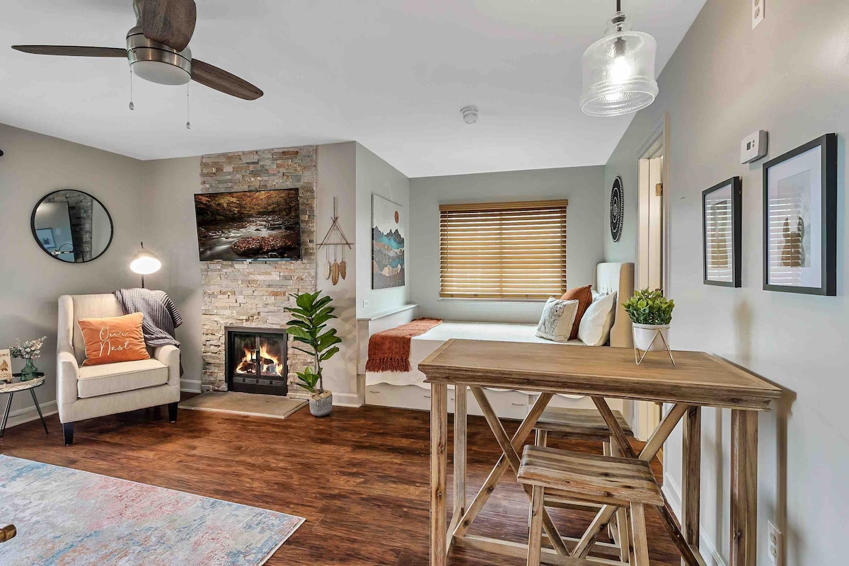 ¡Ubicación, ubicación, ubicación! ¡Disfruta de todo lo que ofrece Knoxville, desde juegos de pelota hasta cervecerías, sin mover tu coche de nuestro APARCAMIENTO DE GARAJE INCLUIDO! A 12 minutos a pie del estadio Neyland. A 1 milla del corazón del centro de Knoxville. Este lujoso apartamento tipo estudio, al que se puede llegar a pie, cuenta con una cama tamaño queen, colchón inflable, Fire TV, asientos cómodos, zona de comedor/trabajo, baño con ducha, acceso wifi y una cocina totalmente equipada con lavavajillas. Todas las sábanas están incluidas, así como extras.