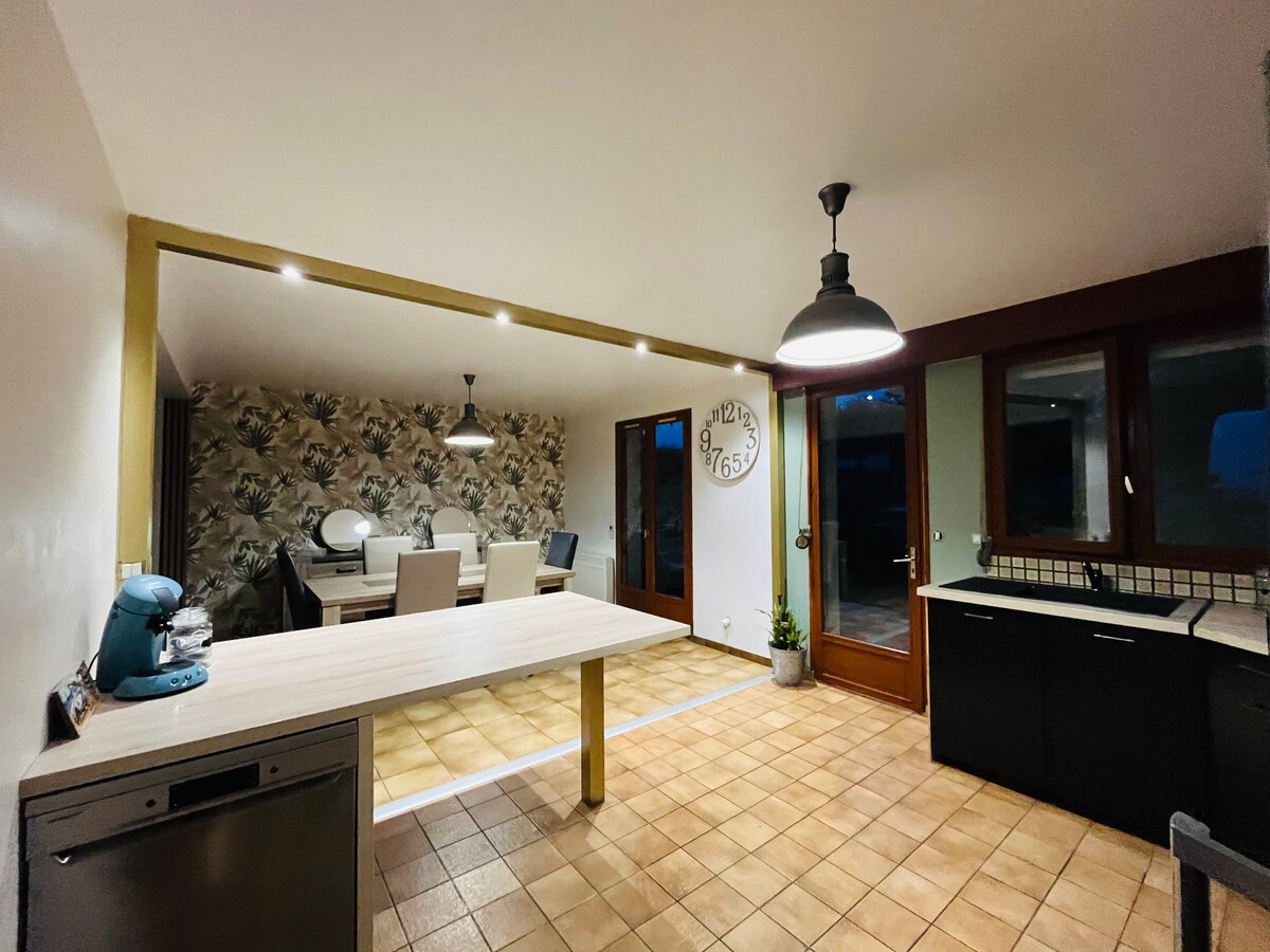 Encantadora casa de una sola planta con chimenea de leña orientada al sur, jardín privado y cerrado y terraza. Este bonito lugar, ubicado en un edificio anexo de la casa de los propietarios, está ubicado en el borde de un carril tranquilo con un gran parque con árboles, naturaleza y prados como vecinos. Este lugar, no muy lejos de la Baie de Somme, el mar y el bosque, será ideal para un fin de semana, unas vacaciones o un descanso de teletrabajo para parejas o familias.