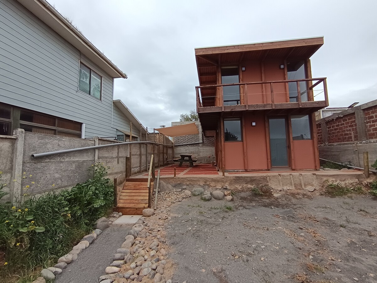 Son dos apartamentos tipo Tiny house de 36 metros cuadrados, con vista al mar. A pocos minutos caminando a la playa. Ideal para parejas y amigos. Cercania con minimarket, restaurantes, cafeterias. Tiene una cama matrimonial mas un sofá cama. Incluye ropa de cama, jabon, papel higenico, estacionamiento para un automovil. La cocina esta equipada con horno, parrilla a carbon, calefacción eléctrica y todo lo necesario para que tu estadía sea inolvidable. ! te esperamos ¡