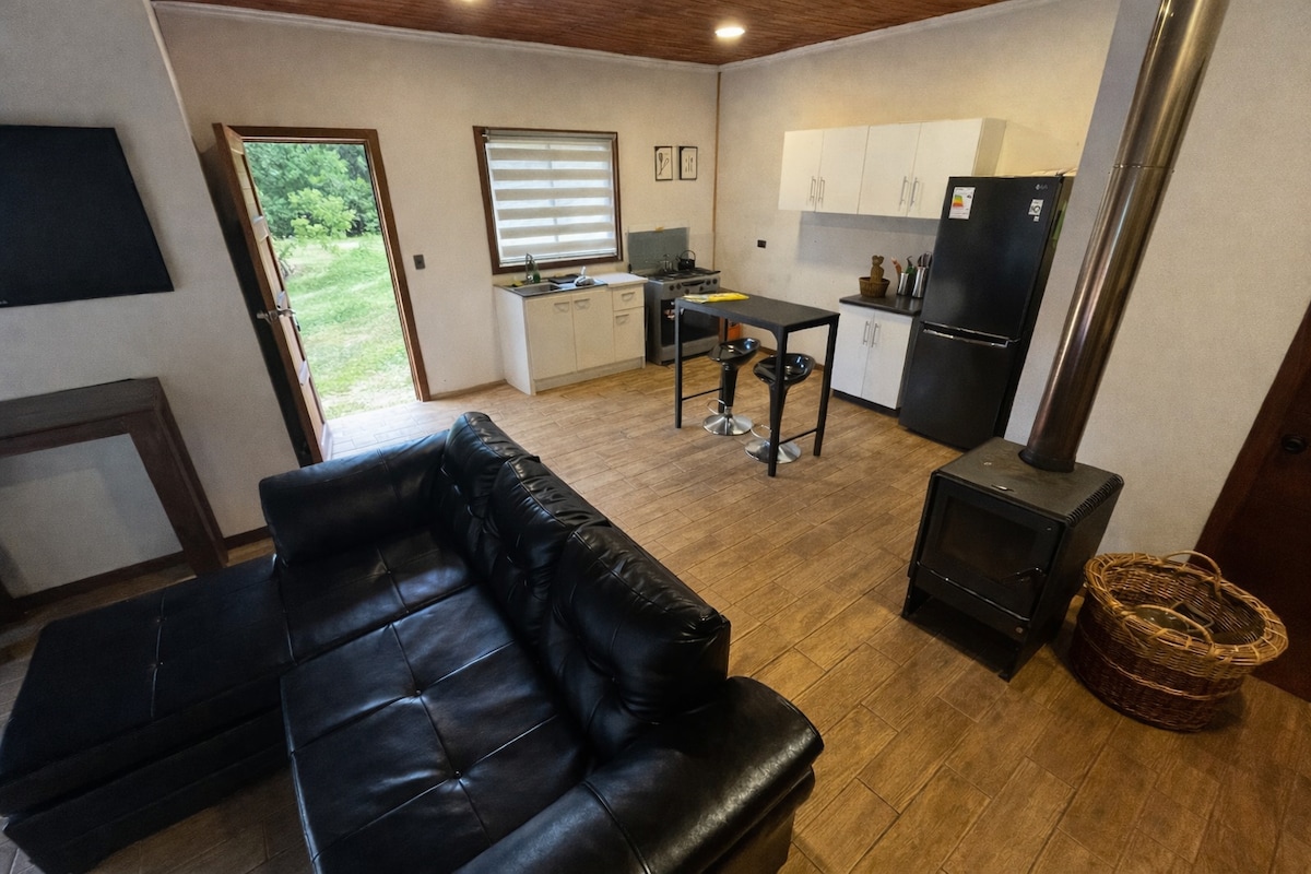 Relájate en este espacio privado y tranquilo con vista al valle. Espacio exclusivo para parejas que busquen un escape natural. Casa full equipada y calefaccionada por chimenea de combustión lenta. Incluye sábanas y toallas. Wifi de alta velocidad (Starlink) y smart TV. Spot para deportes náuticos como windsurf, surf. Cercano a circuito de Moto enduro , zona de pesca y servicios. A 10 minutos de Cáhuil y 15 minutos de Punta Lobos. Estacionamiento privado junto a la cabaña.