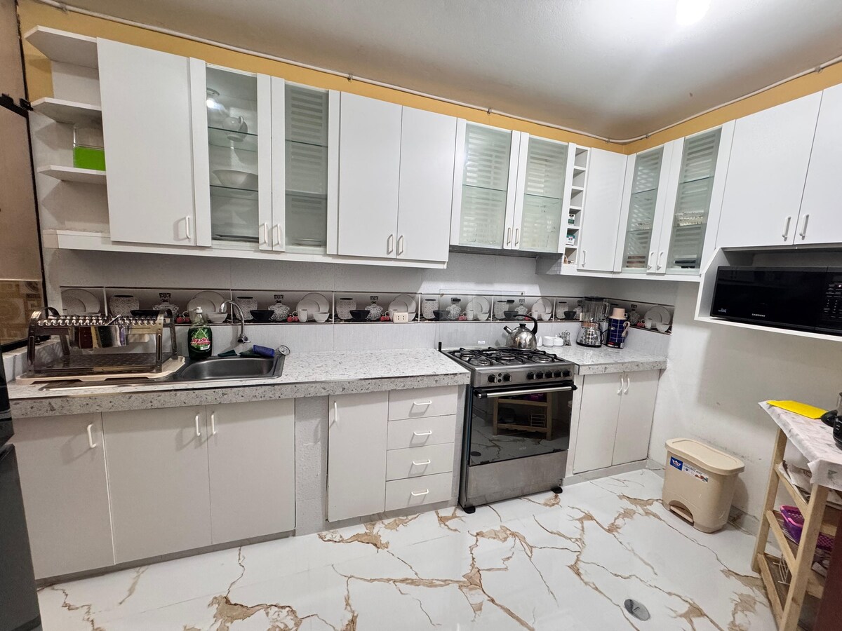 Hola, ¿Que tal? Somos un alojamiento familiar, queremos que disfrutes tu estancia con nosotros y que disfrutes Cajamarca. Nuestro departamento está en el tercer piso. tiene cuatro habitaciones con baño privado, agua caliente y wifi. Tiene una cocina pequeña y una lavandería, en el quinto piso están los tendales. Estamos a 5 minutos del aeropuerto y 8 de los centros comerciales, 15 minutos del centro de la ciudad. ¡Queremos que te sientas parte de nuestra familia!