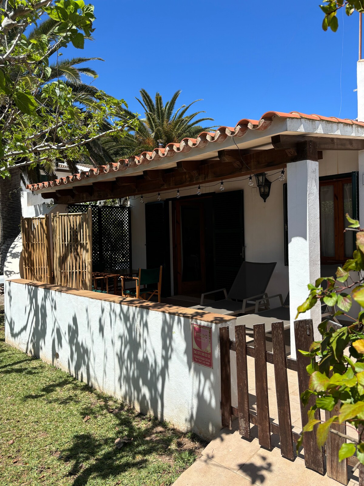 Casa independiente en Urbanización Son Xoriguer, a tan solo 150 metros podrás disfrutar de una playa natural de aguas cristalinas formada por zonas de arena y otras mas rocosas , muy próxima a supermercados, empresas de renting car y bicicletas, a 5 minutos a pie encontraras las famosas playas de Son Xoriguer y Cala´n Bosch con su puerto deportivo, el cual ofrece gran variedad de oferta gastronómica, spa, ocio náutico (alquiler de barcos, buceo, kayak, surf...), zonas recreativas infantiles...