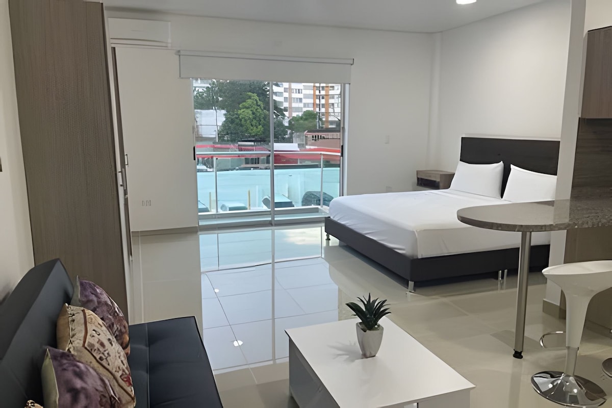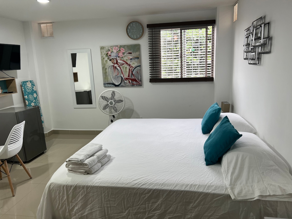 Apartaestudio 503, cómodo y funcional, con cama doble de 1.00m, dos ambientes, baño privado, cocina equipada y Smart TV. Diseñado para una estadía práctica y confortable. Nuestra ubicación estratégica cerca al boulevard del rio, calle del sabor, parque de los gatos, barrio San Antonio. Servicio de desayuno opcional con costo adicional, disponible bajo solicitud. ¡Vive la experiencia!