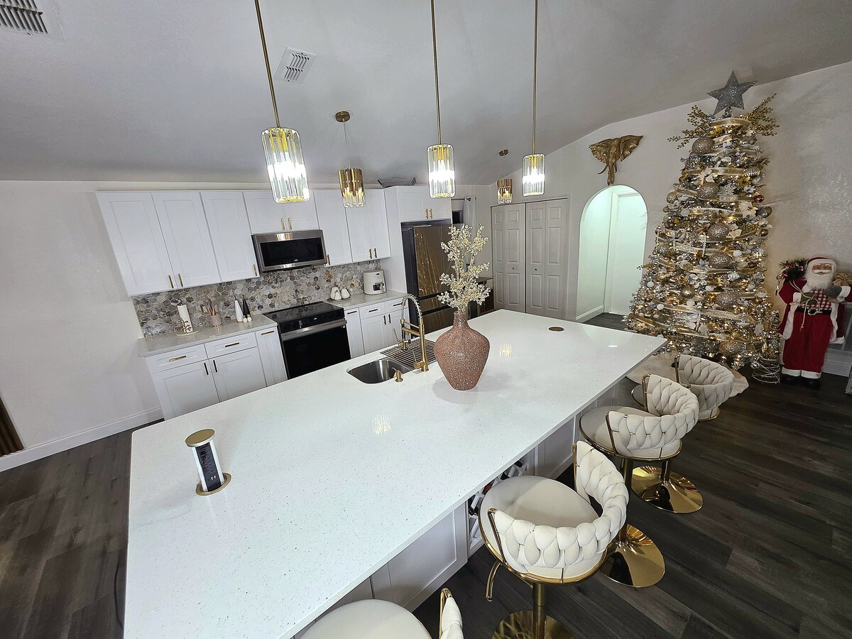 NO SE ADMITEN MASCOTAS. EL PROPIETARIO TIENE UNA ALERGIA GRAVE. Relájate en tu traje de cumpleaños en un divertido centro vacacional de Paradise Lakes con ropa opcional. Muebles modernos para hasta 4 personas con una cama tamaño king y un sofá cama de cuero en la sala de estar con colchón de espuma viscoelástica. Cocina completa con refrigerador, horno y microondas para cocinar, cafetera, lavadora y secadora para lavar la ropa, 2 televisores y una bañera para relajarse. Casa club con 2 piscinas, jacuzzi, eventos como karaoke, bandas en vivo y más (las tarifas varían según los días de la semana).