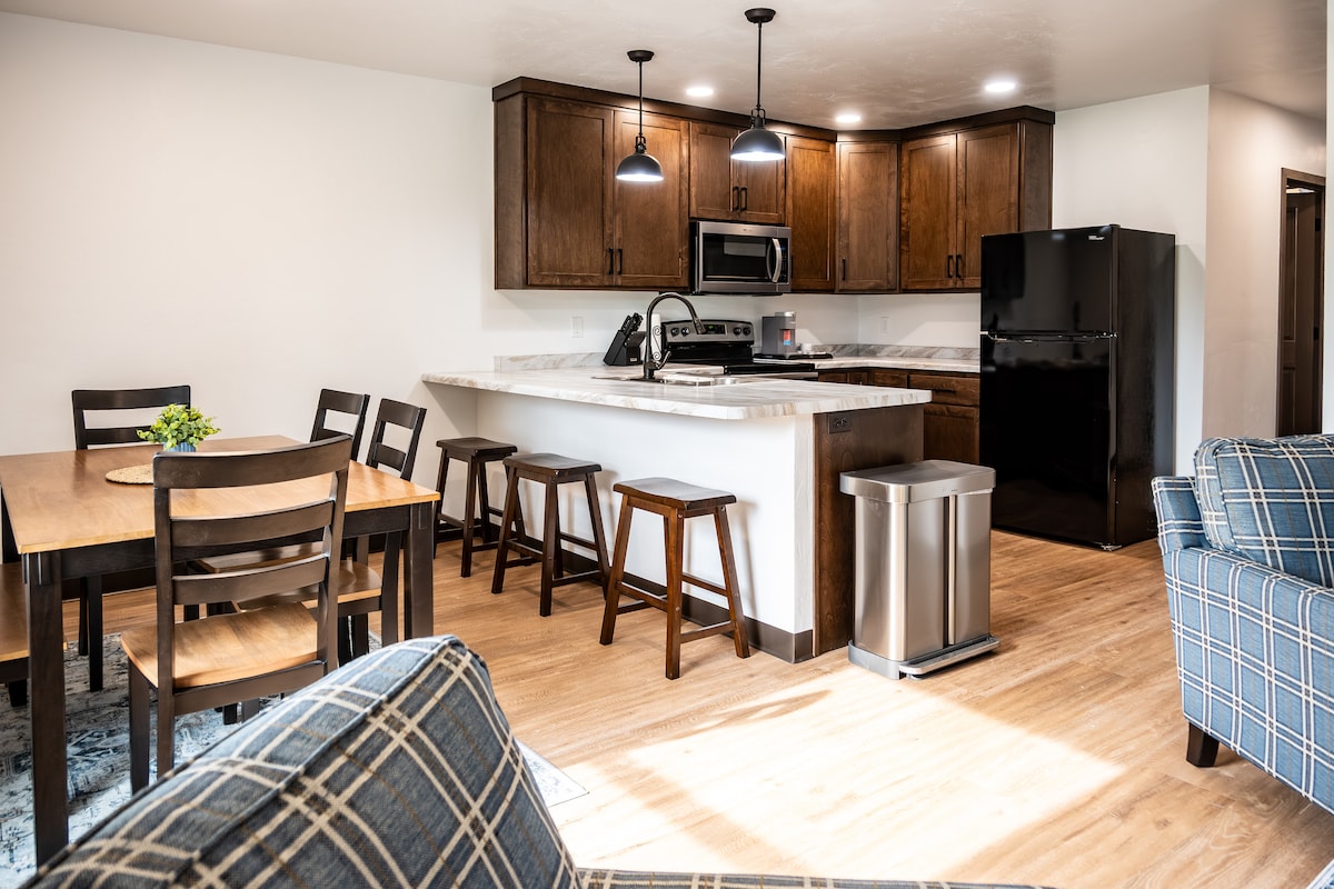 ¡Ven y disfruta de una casa adosada de nueva construcción que está totalmente amueblada para una estancia fácil! Ubicado en Brillion, es céntrico para Manitowoc, Green Bay y Appleton (a unos 25 minutos de cada uno y 40 minutos de Lambeau Field). Disfruta de muchas comodidades como calefacción por zonas en el suelo, aire acondicionado de pared, entrada cero (sin escalones), garaje adjunto para 2 autos, patio, vistas al parque (Peters Park), concepto abierto con cocina completa y grande, comedor y sala de estar. Baño completo de doble entrada, lavadora y secadora en la unidad. A minutos del Centro Nórdico Ariens y sus otros lugares.