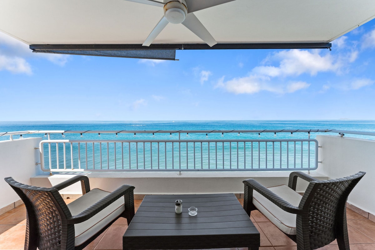 Retiro frente a la playa en Rincón con balcón privado y piscinas