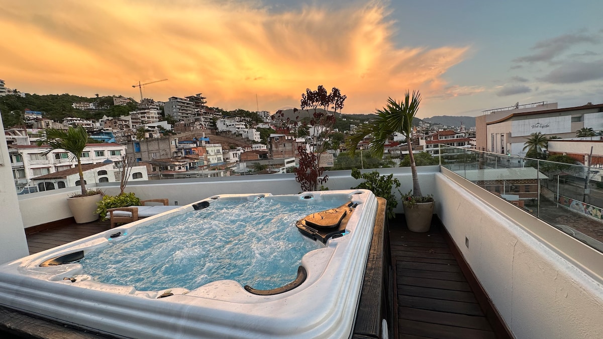 A spectacular PANORAMIC OCEAN VIEW Penthouse Loft steps from the BEACH and MALECON, with your own INFINITY POOL+all services and comforts, fully-equipped kitchen, AC, quality bed, waterfall shower, Wi-Fi, Smart TV, and the BEST VIEWS to admire Incredible SUNSETS and FIREWORKS every night, you may even find some Whales splashing over the Bay from your bed!! Walk to tons of restaurants, shops, art galleries, markets, or sunbathe at the many outdoor spaces, pools and decks... Welcome to Paradise!