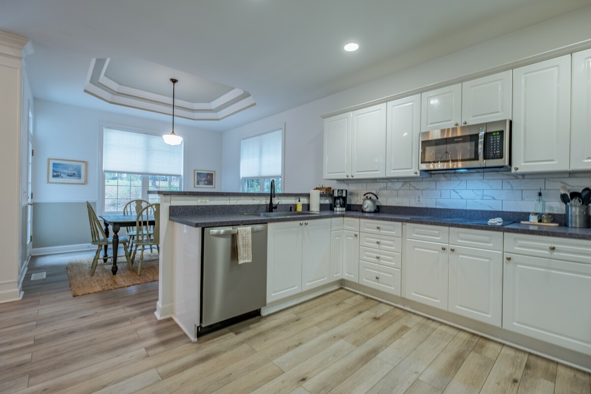 Una moderna casa recién renovada con toques personales en un barrio tranquilo ubicado en Fayetteville. Es ideal para salir a caminar o a correr. A unos 5 minutos de Ft Bragg, a 10 minutos de Raeford, a 25 minutos de la I95 y a 25 minutos del aeropuerto. La casa tiene tres dormitorios, todos con camas tamaño queen. La cocina está totalmente equipada para las personas que quieran cocinar. La sala de estar está equipada con un televisor y un roku. Hay lavadora y secadora disponibles para su uso en el garaje.