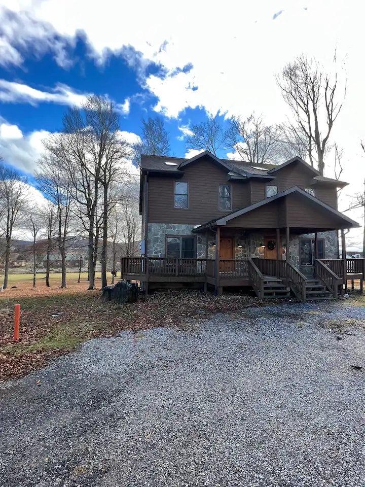 Cabaña renovada con todas las comodidades, incluido un porche *nuevo* con calentadores para todas las estaciones, una gran mesa de comedor y un columpio en el porche. Hornea una pizza en el horno de leña mientras tus hijos saltan en el trampolín o asan malvaviscos. Disfruta de caminatas en y alrededor de los Dolly Sods; en invierno, esquí, trineo o tubo; en verano, chapoteo, bote y balsa en ríos cercanos. Chimenea de gas. Wifi, cable, televisión inteligente, configuración de trabajo a distancia. Armario de juegos, suministros para fuertes y extras especiales para todas las edades.