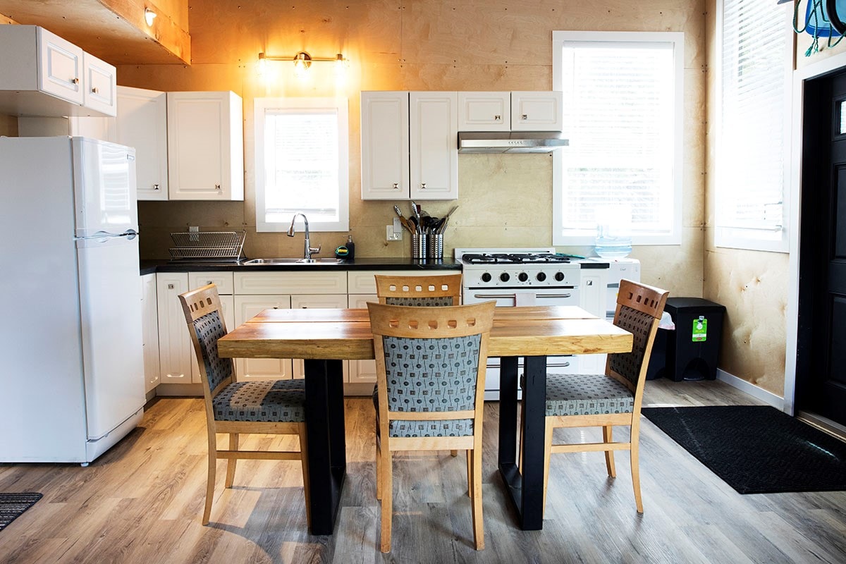Cabaña flotante — Minibora Le bolet (máximo 4 huéspedes) Una sala de estar luminosa y acogedora: - Puerta de garaje de vidrio para una experiencia inmersiva frente al mar. - Cocina totalmente equipada y barbacoa privada Distribución de las camas: - Dormitorio de concepto abierto con una cama doble. - Sofás modulares: 2 camas individuales o 1 cama doble. Incluido: - Leña - Café tostado localmente. - 11 cervezas artesanales Comtés - Surf de remo y kayaks en verano - Raquetas de nieve en invierno Se admiten perros (cargo adicional) CITQ: 302677