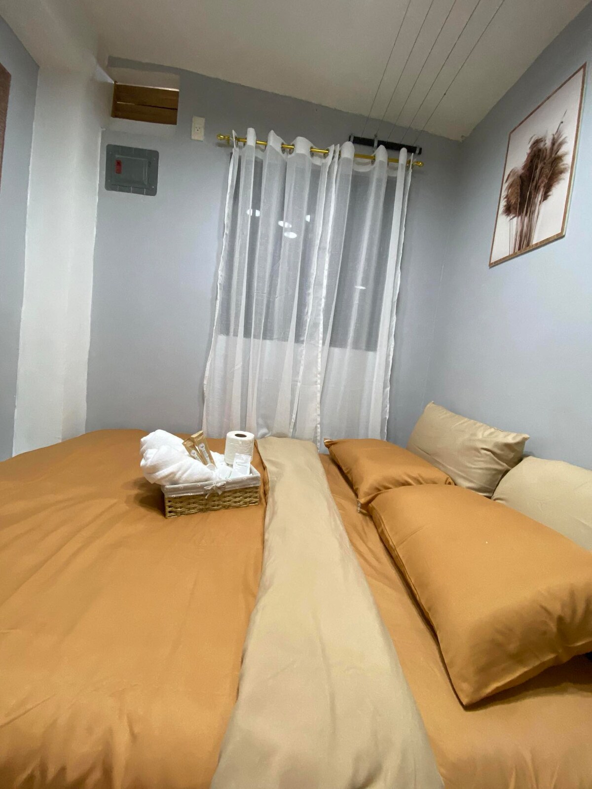El apartamento se encuentra a 10-15 minutos a pie de CWC (complejo de deportes acuáticos CamSur); a 10-15 minutos en auto de la ciudad de Naga; y a 5 minutos en auto del aeropuerto de Naga. Es una propiedad nueva. Las comodidades incluyen una ducha caliente, cocina, comedor, espacio de trabajo, sala de estar, ref,entre otros. Puedes cocinar en la cocina. Por lo general, puede alojar a 2 huéspedes, pero puede acomodar 3 o 4 (debes solicitar una cama adicional). Hay un limpiador que viene regularmente. Se encuentra en un barrio tranquilo y espacioso.
