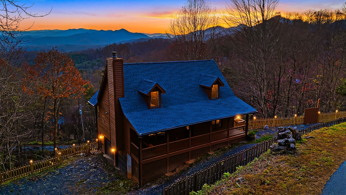 Vistas a la montaña desde el porche delantero de Sun Ridge Cottage